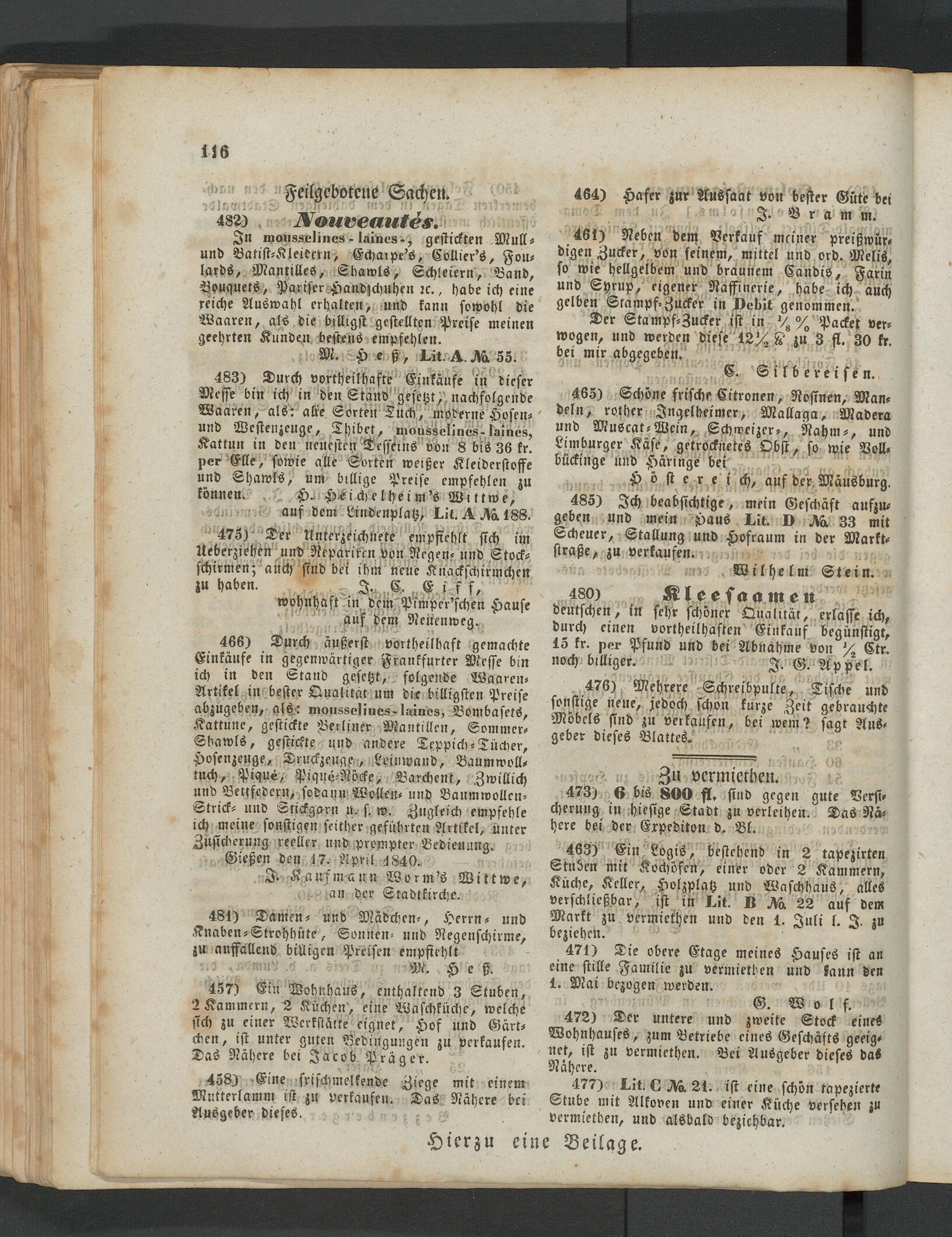 Anzeigeblatt für die Provinzialhauptstadt Gießen. 1840-1867