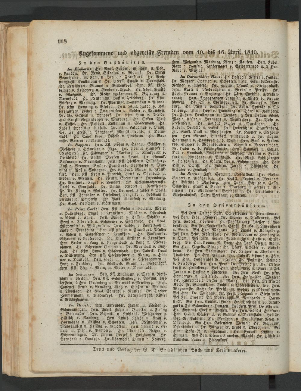 Anzeigeblatt für die Provinzialhauptstadt Gießen. 1840-1867