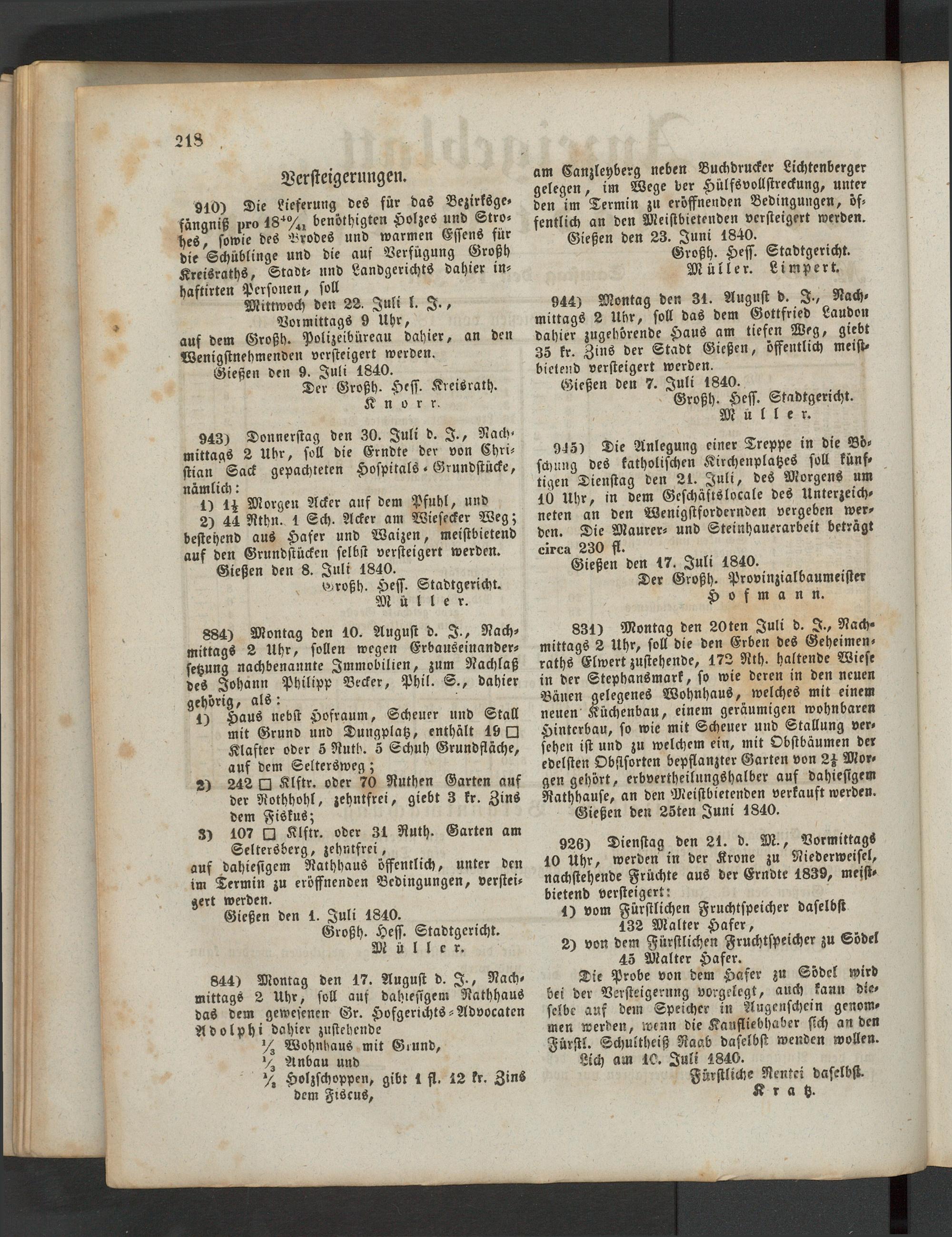 Anzeigeblatt für die Provinzialhauptstadt Gießen. 1840-1867