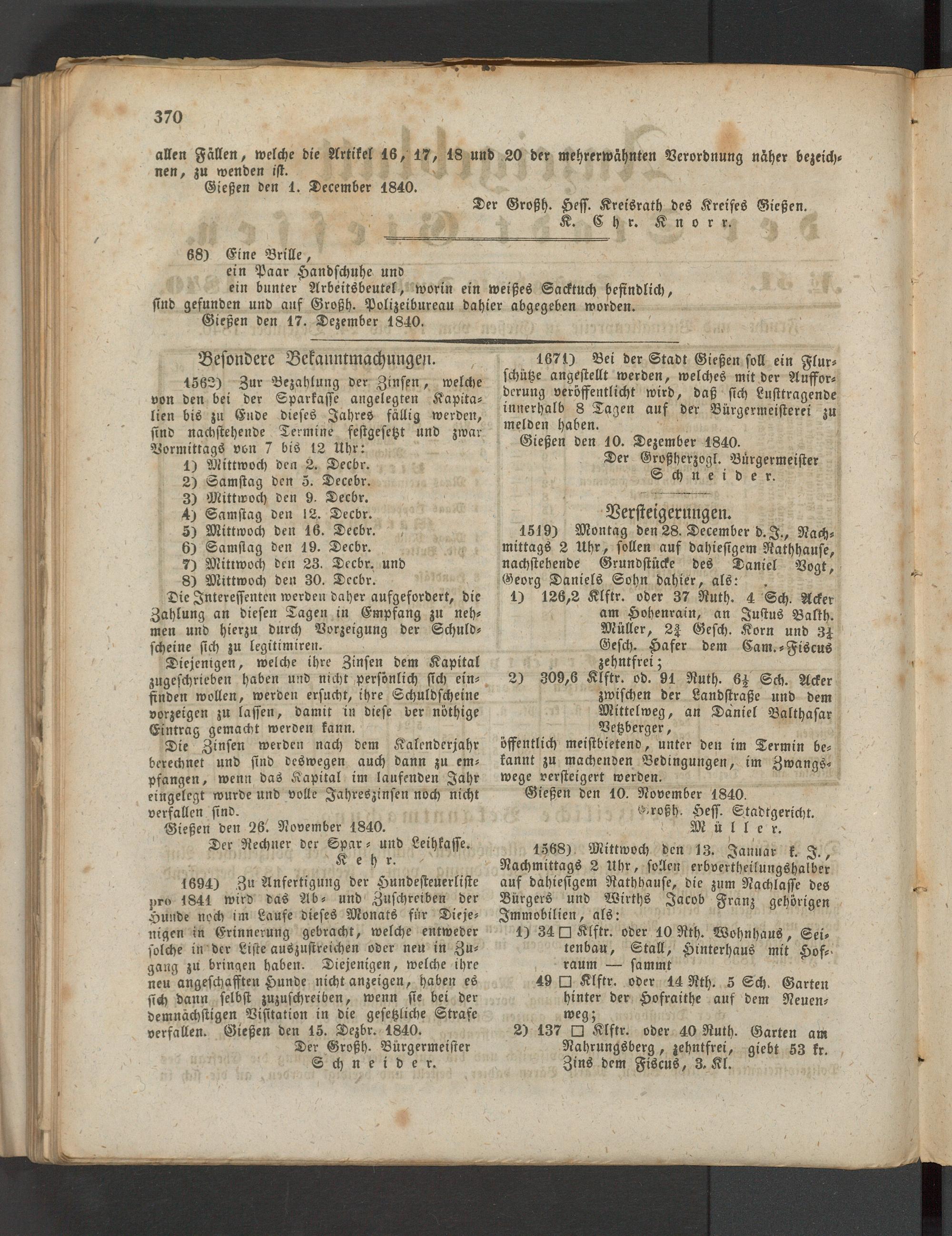 Anzeigeblatt für die Provinzialhauptstadt Gießen. 1840-1867