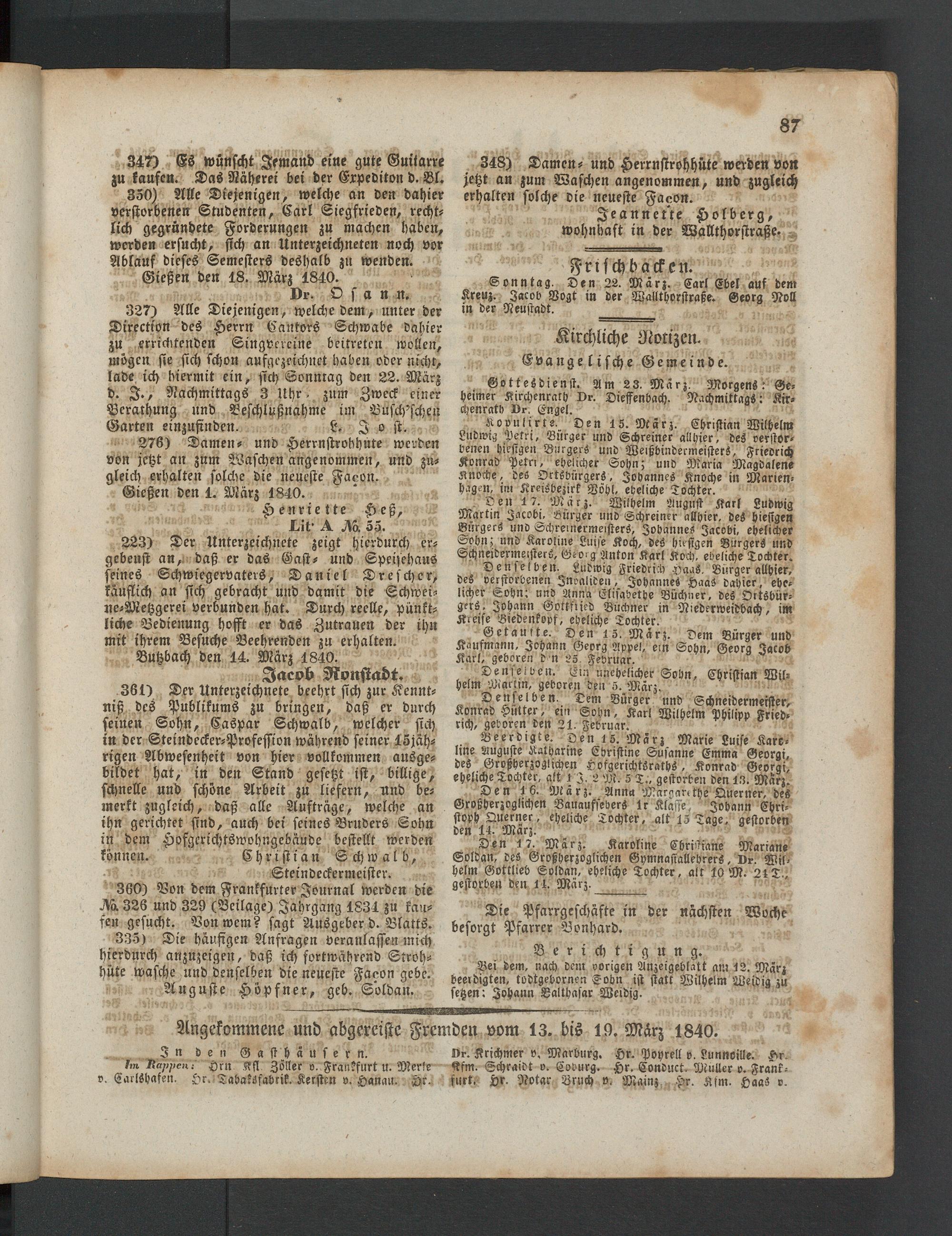 Anzeigeblatt für die Provinzialhauptstadt Gießen. 1840-1867