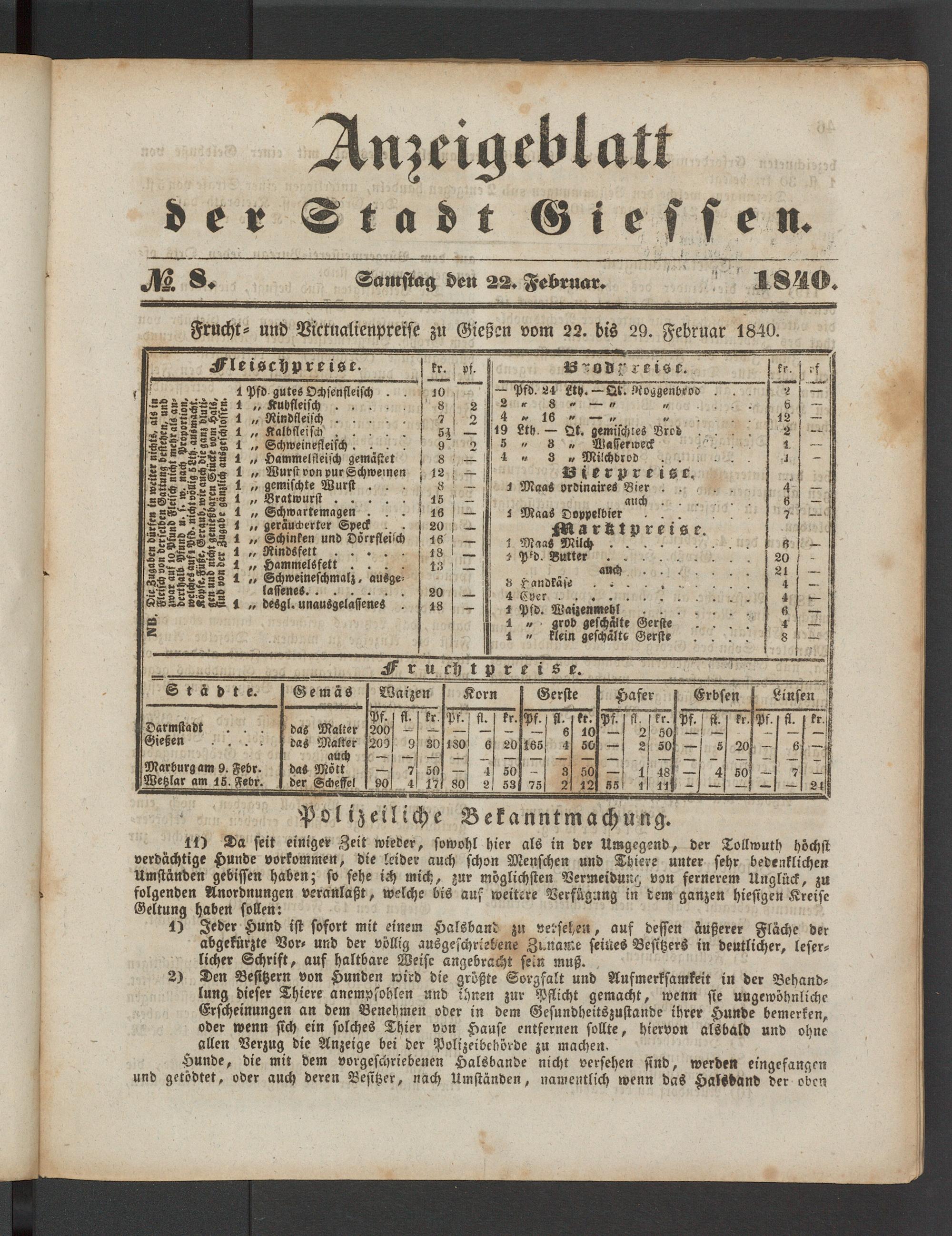 Anzeigeblatt für die Provinzialhauptstadt Gießen. 1840-1867