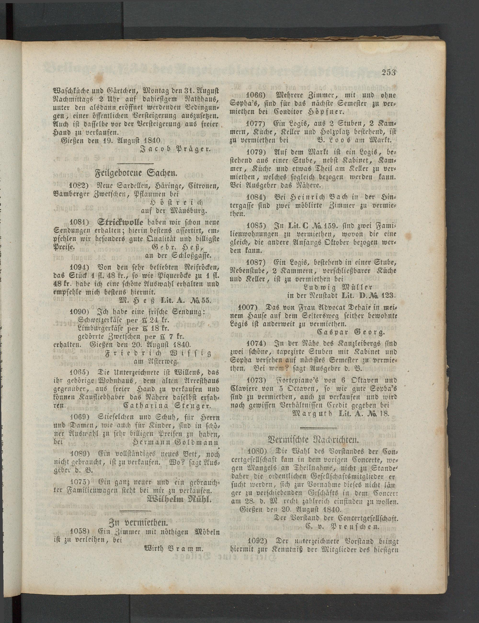 Anzeigeblatt für die Provinzialhauptstadt Gießen. 1840-1867