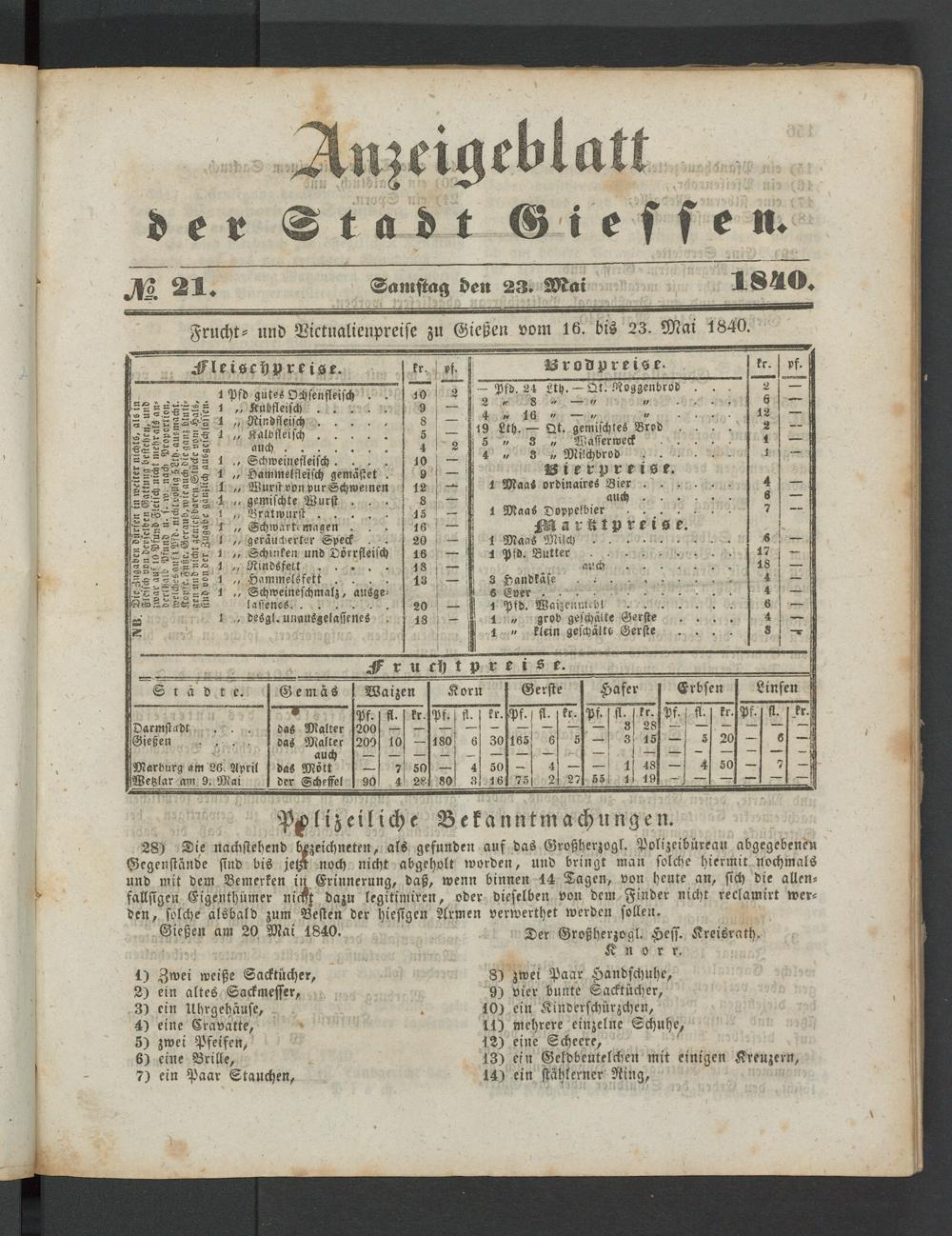 Anzeigeblatt für die Provinzialhauptstadt Gießen. 1840-1867