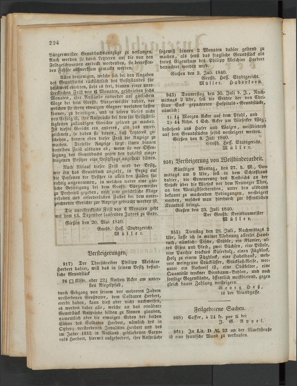 Anzeigeblatt für die Provinzialhauptstadt Gießen. 1840-1867