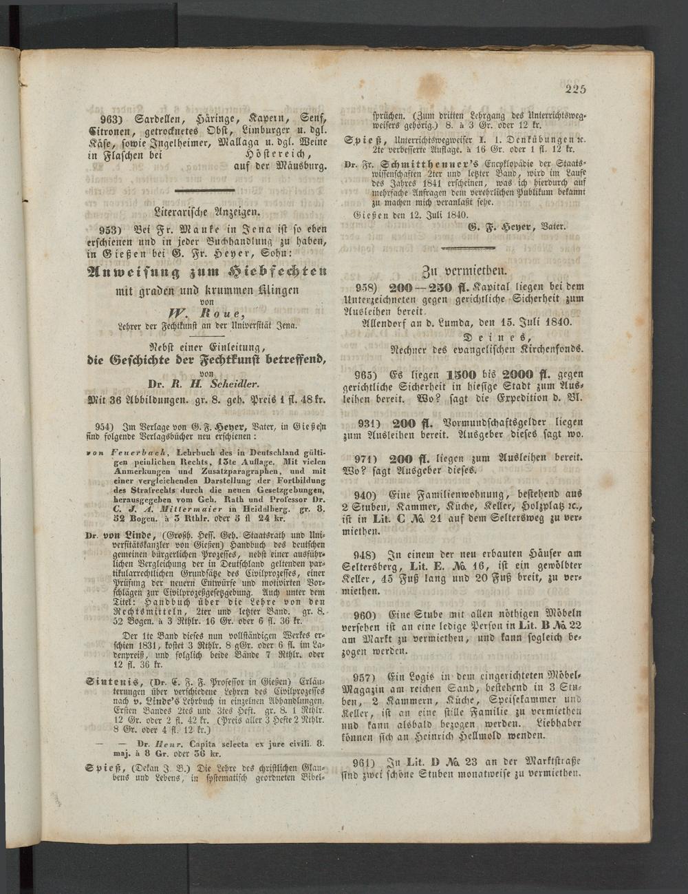Anzeigeblatt für die Provinzialhauptstadt Gießen. 1840-1867