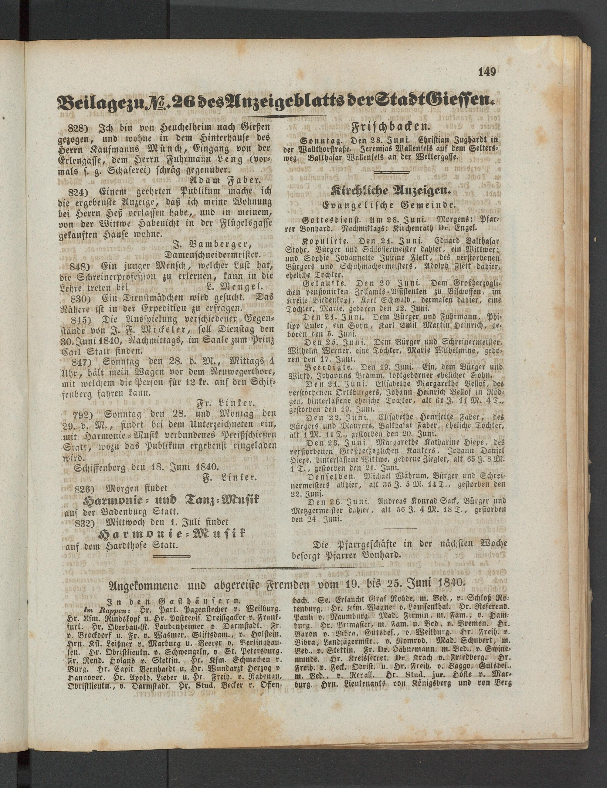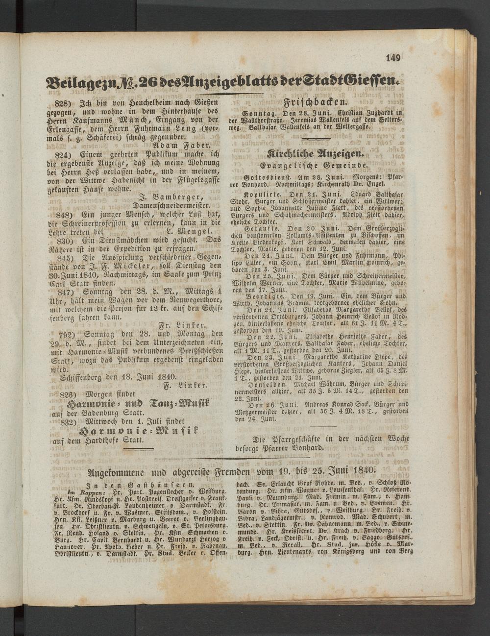 Anzeigeblatt für die Provinzialhauptstadt Gießen. 1840-1867