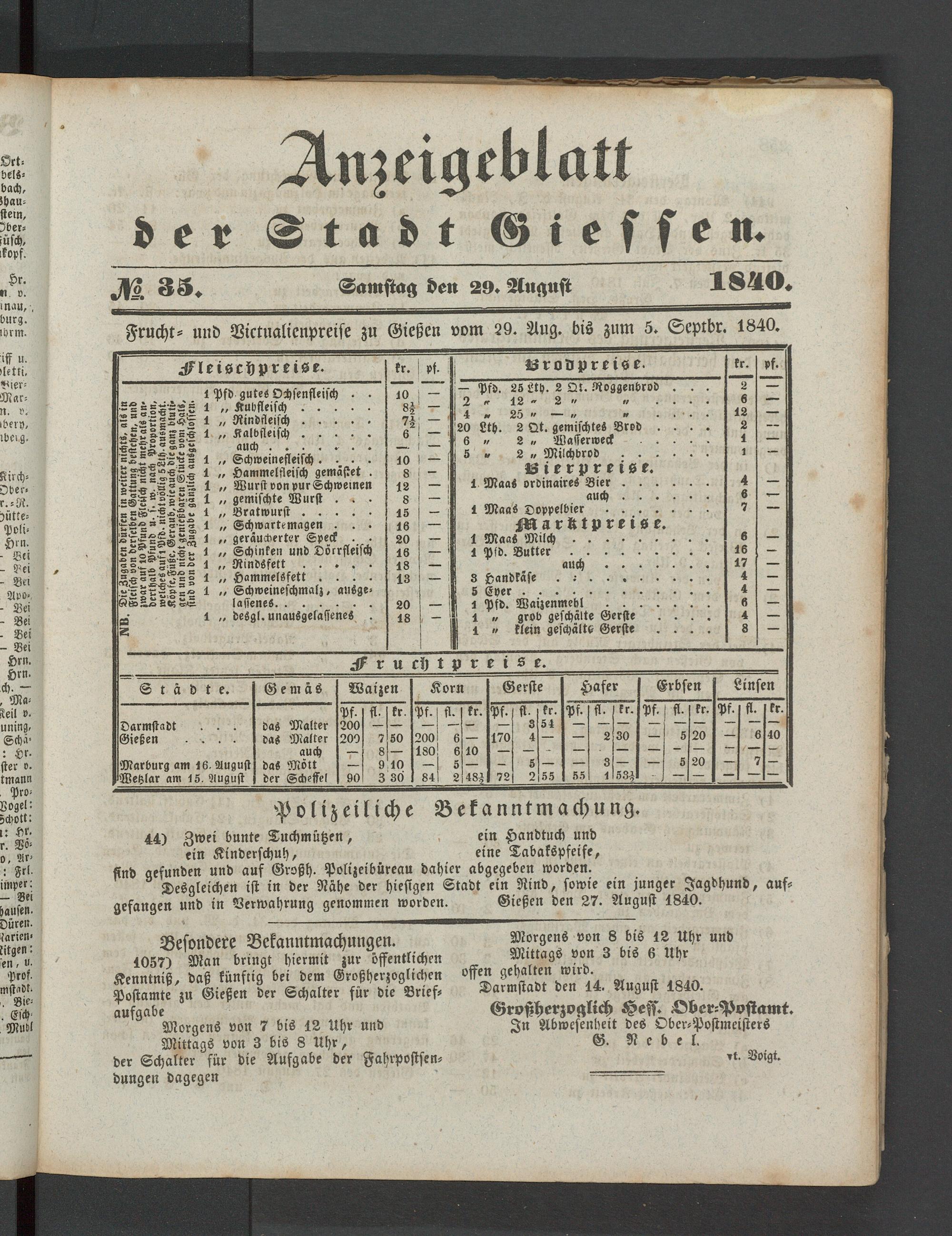 Anzeigeblatt für die Provinzialhauptstadt Gießen. 1840-1867