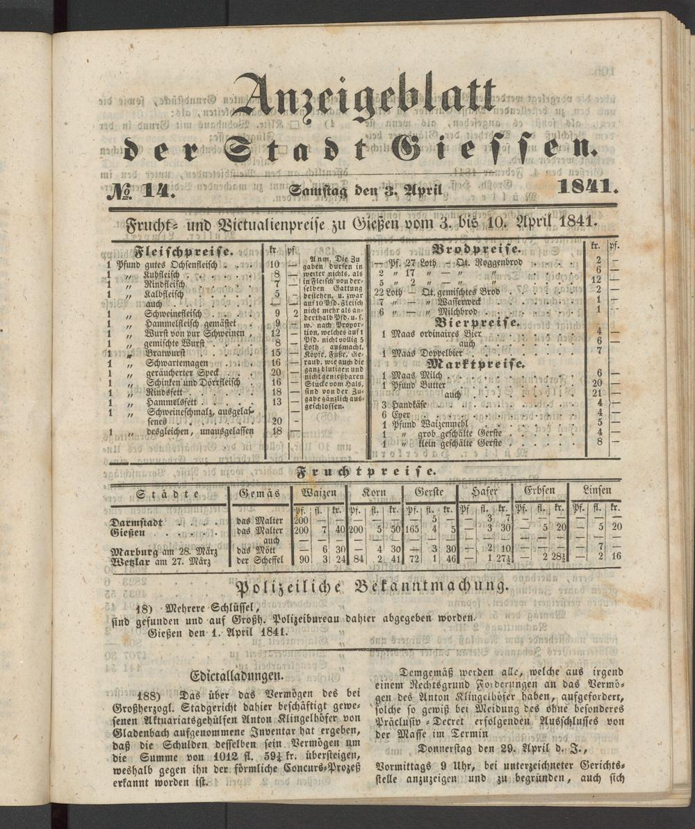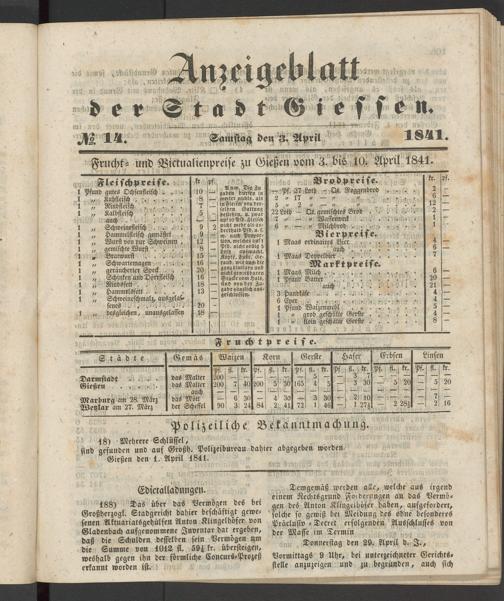 Anzeigeblatt für die Provinzialhauptstadt Gießen. 1840-1867