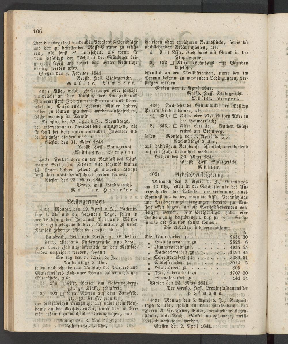 Anzeigeblatt für die Provinzialhauptstadt Gießen. 1840-1867