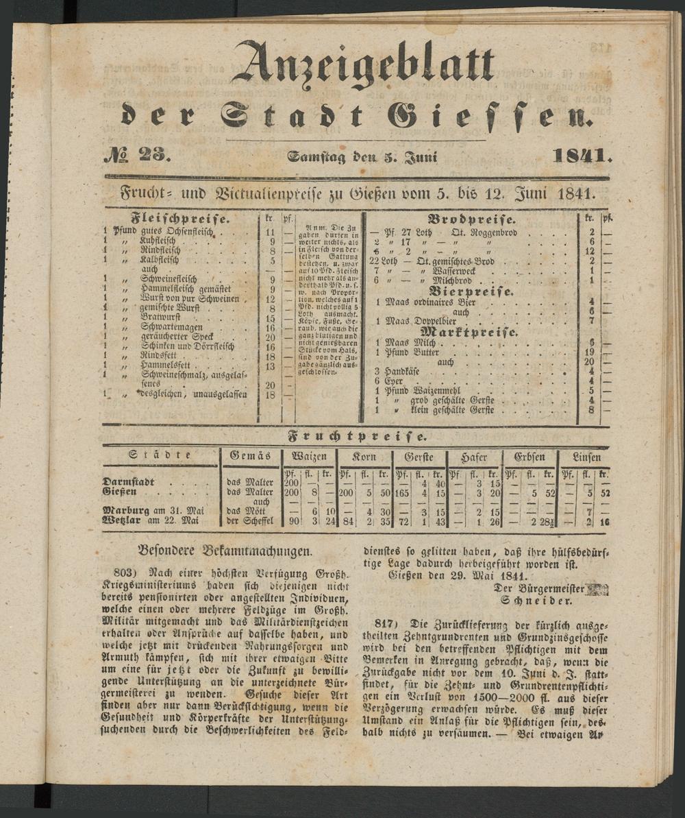 Anzeigeblatt für die Provinzialhauptstadt Gießen. 1840-1867