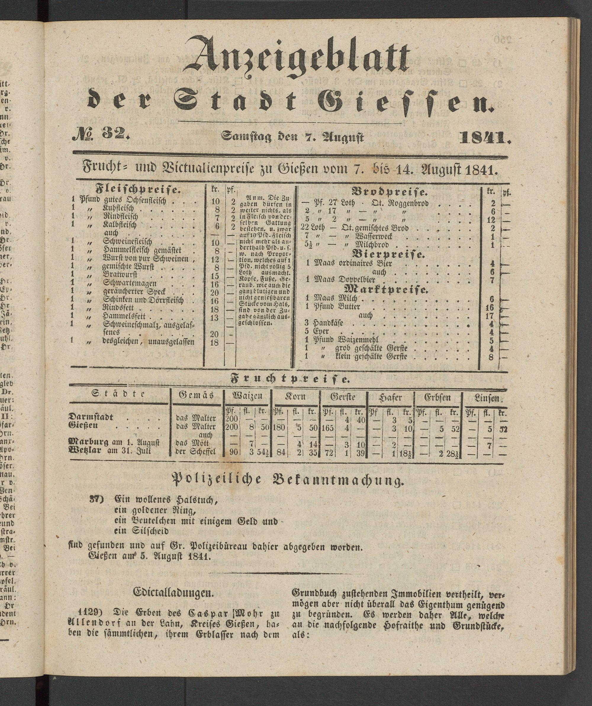 Anzeigeblatt für die Provinzialhauptstadt Gießen. 1840-1867