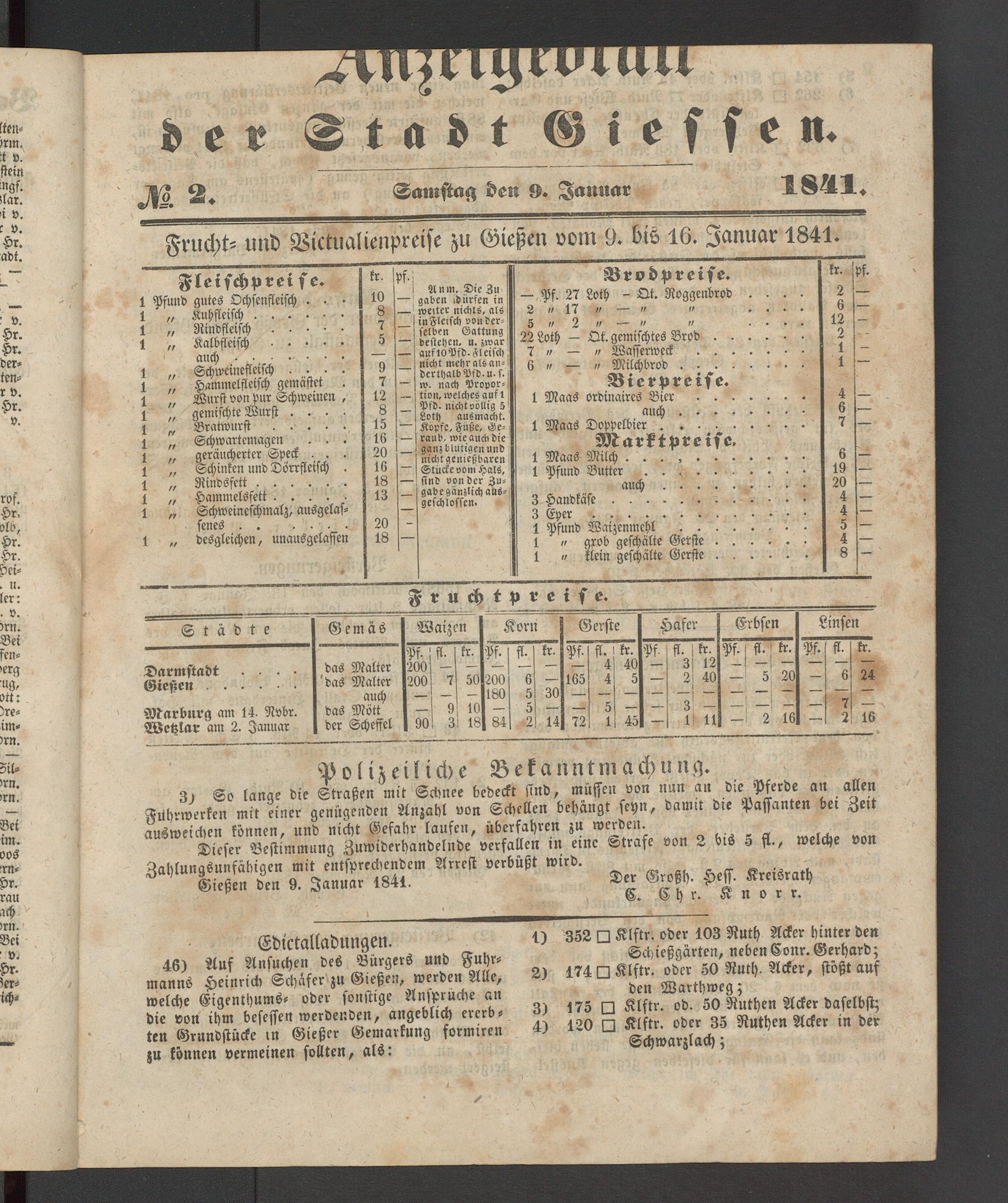 Anzeigeblatt für die Provinzialhauptstadt Gießen. 1840-1867