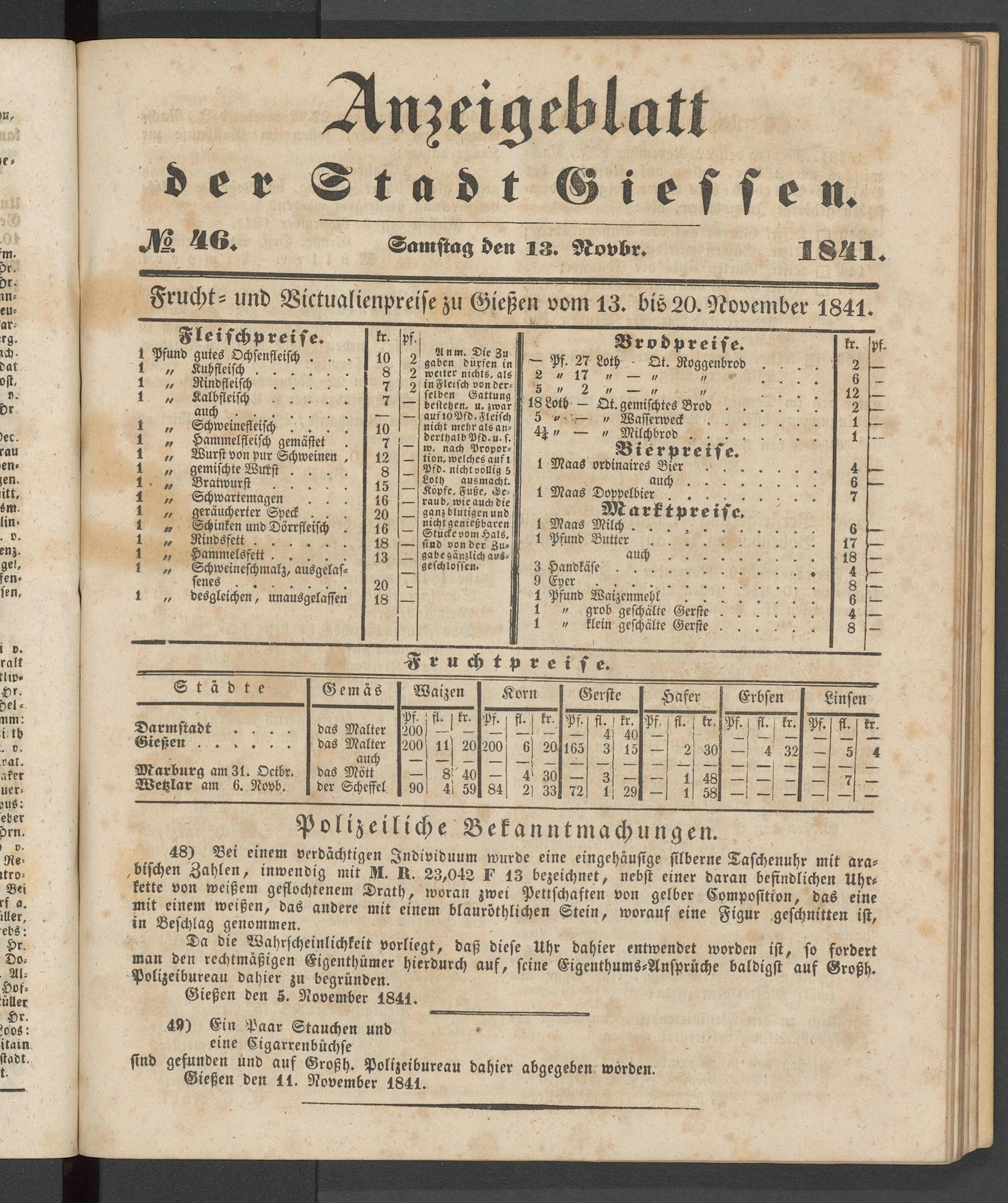 Anzeigeblatt für die Provinzialhauptstadt Gießen. 1840-1867
