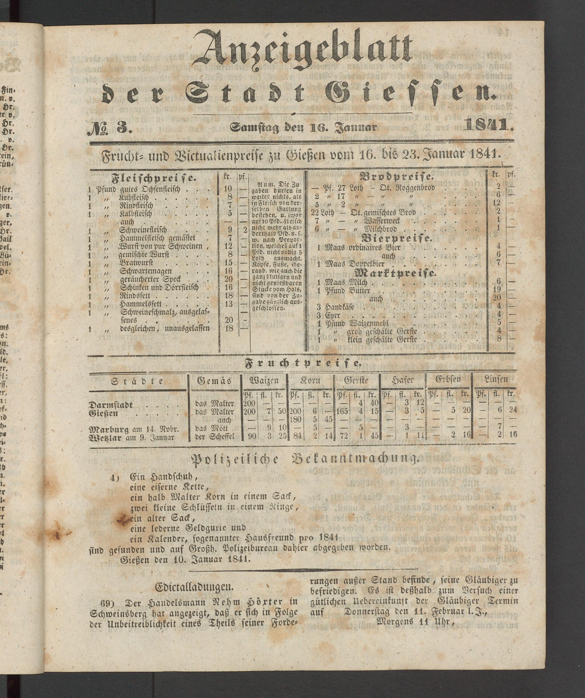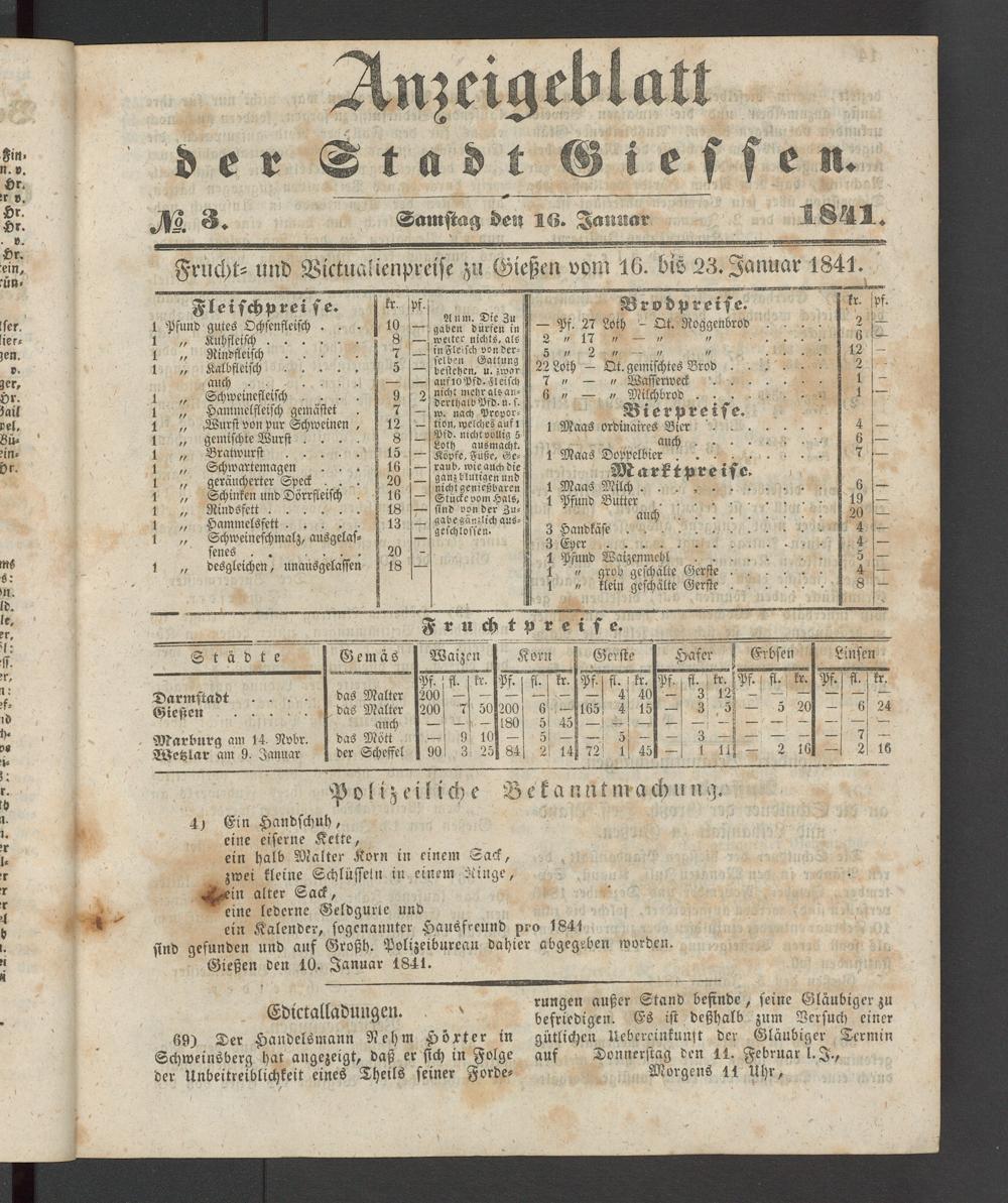 Anzeigeblatt für die Provinzialhauptstadt Gießen. 1840-1867