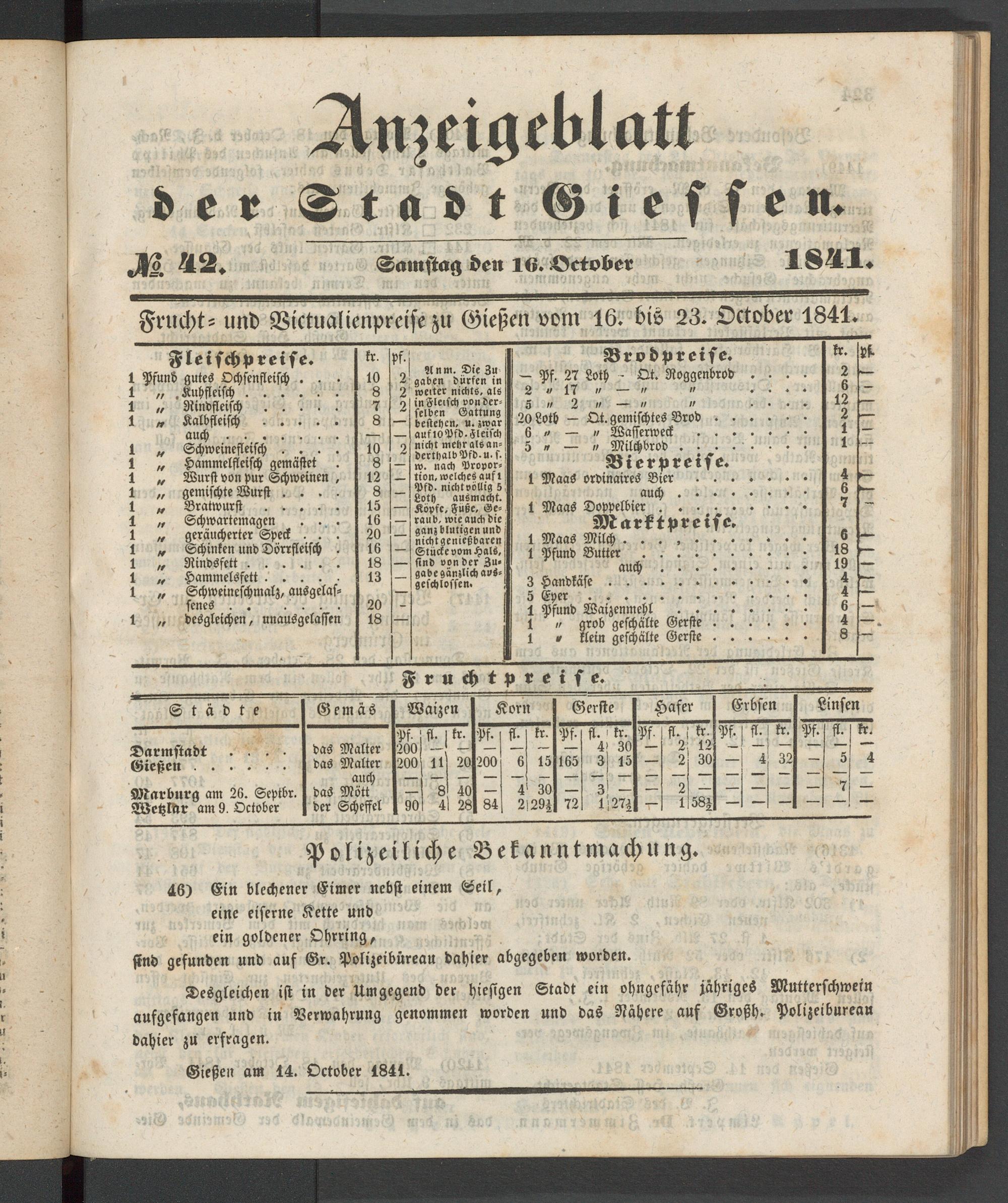 Anzeigeblatt für die Provinzialhauptstadt Gießen. 1840-1867