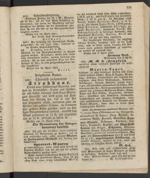 Anzeigeblatt für die Provinzialhauptstadt Gießen. 1840-1867