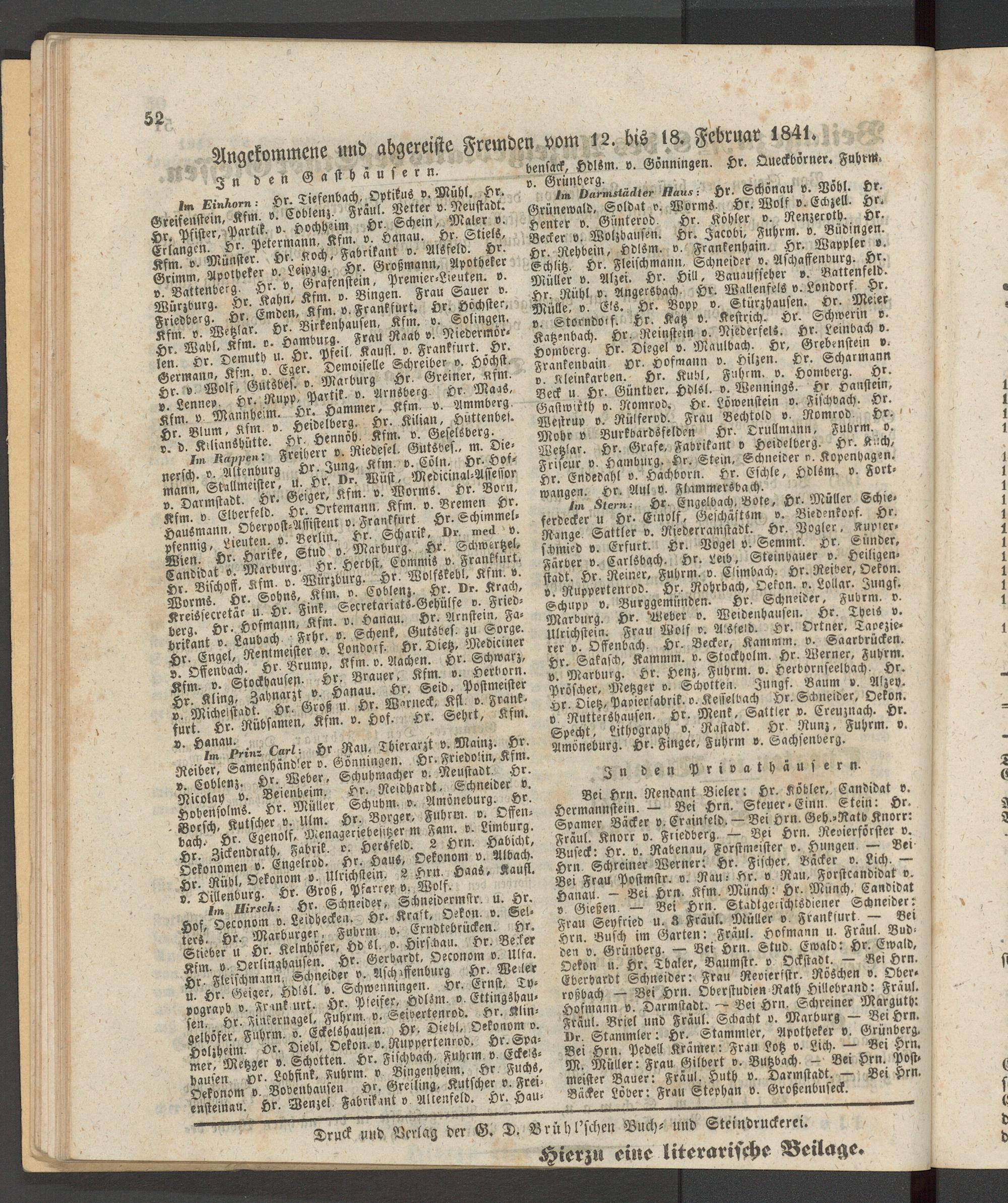 Anzeigeblatt für die Provinzialhauptstadt Gießen. 1840-1867