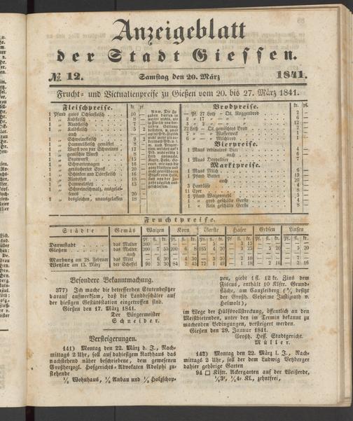 Anzeigeblatt für die Provinzialhauptstadt Gießen. 1840-1867