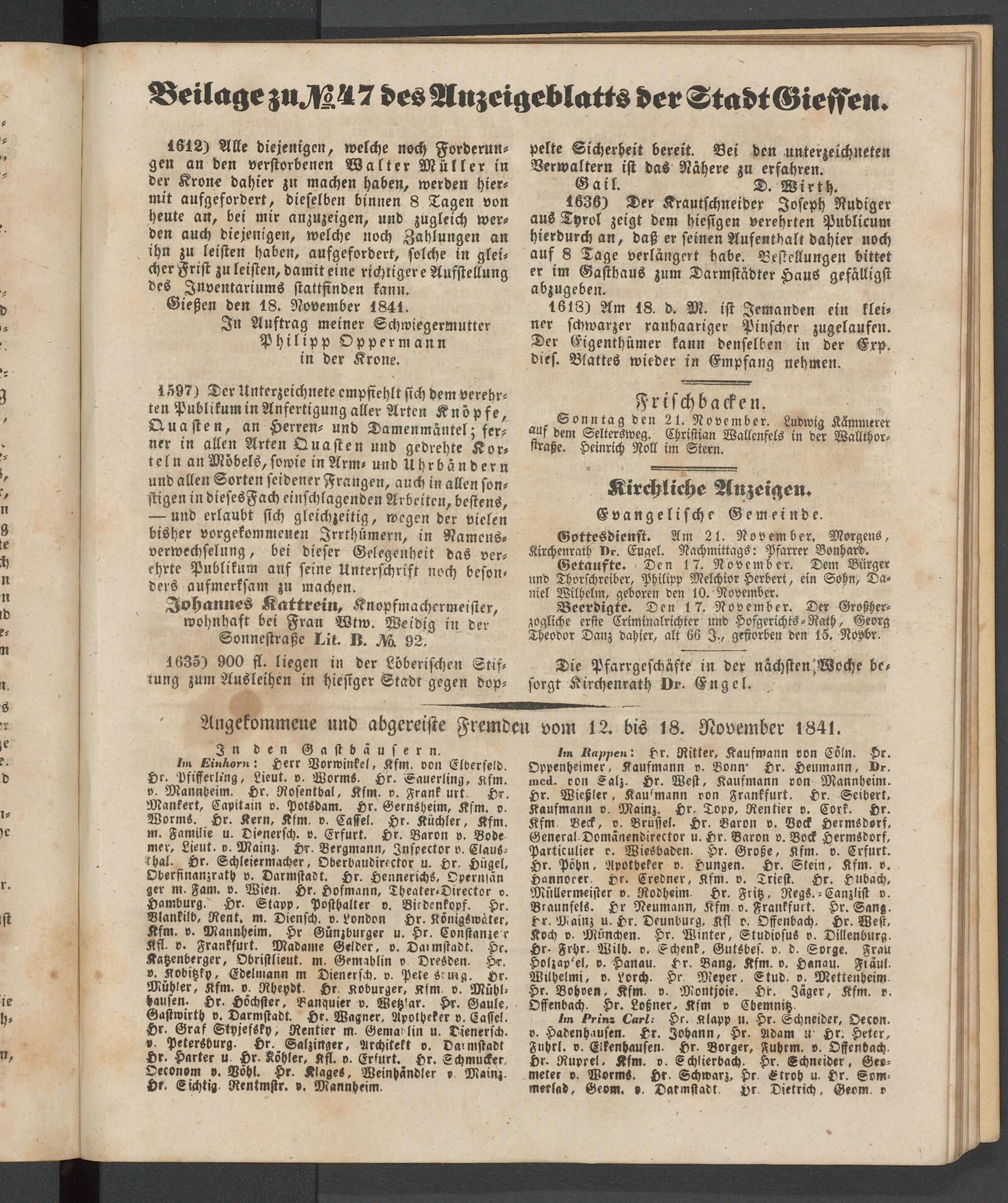 Anzeigeblatt für die Provinzialhauptstadt Gießen. 1840-1867