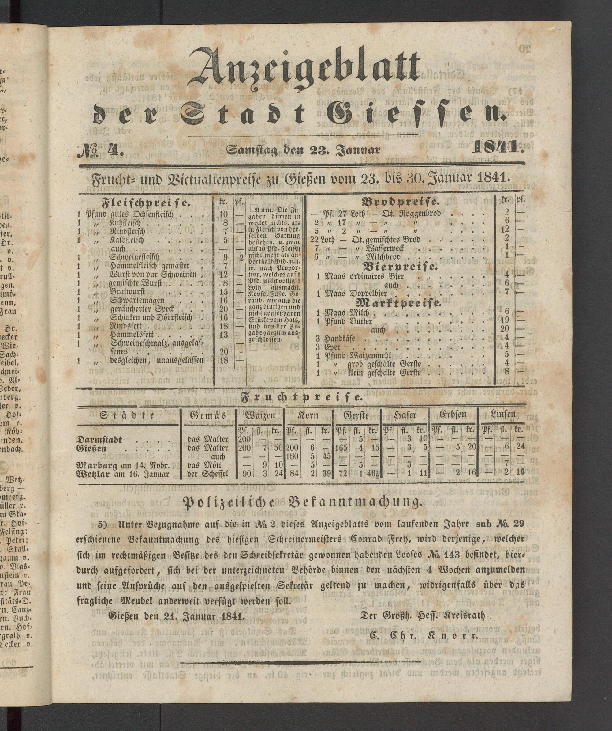Anzeigeblatt für die Provinzialhauptstadt Gießen. 1840-1867