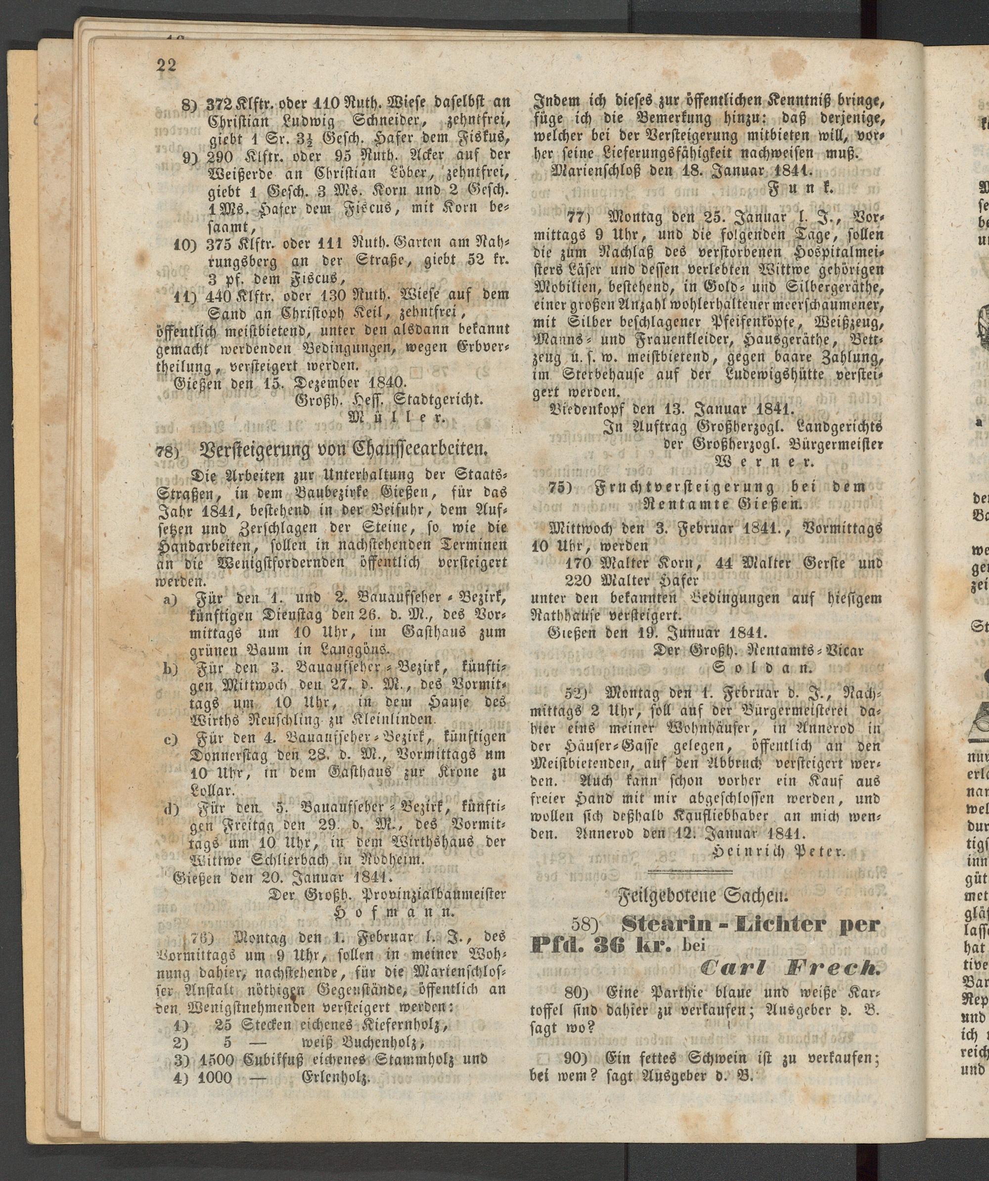 Anzeigeblatt für die Provinzialhauptstadt Gießen. 1840-1867