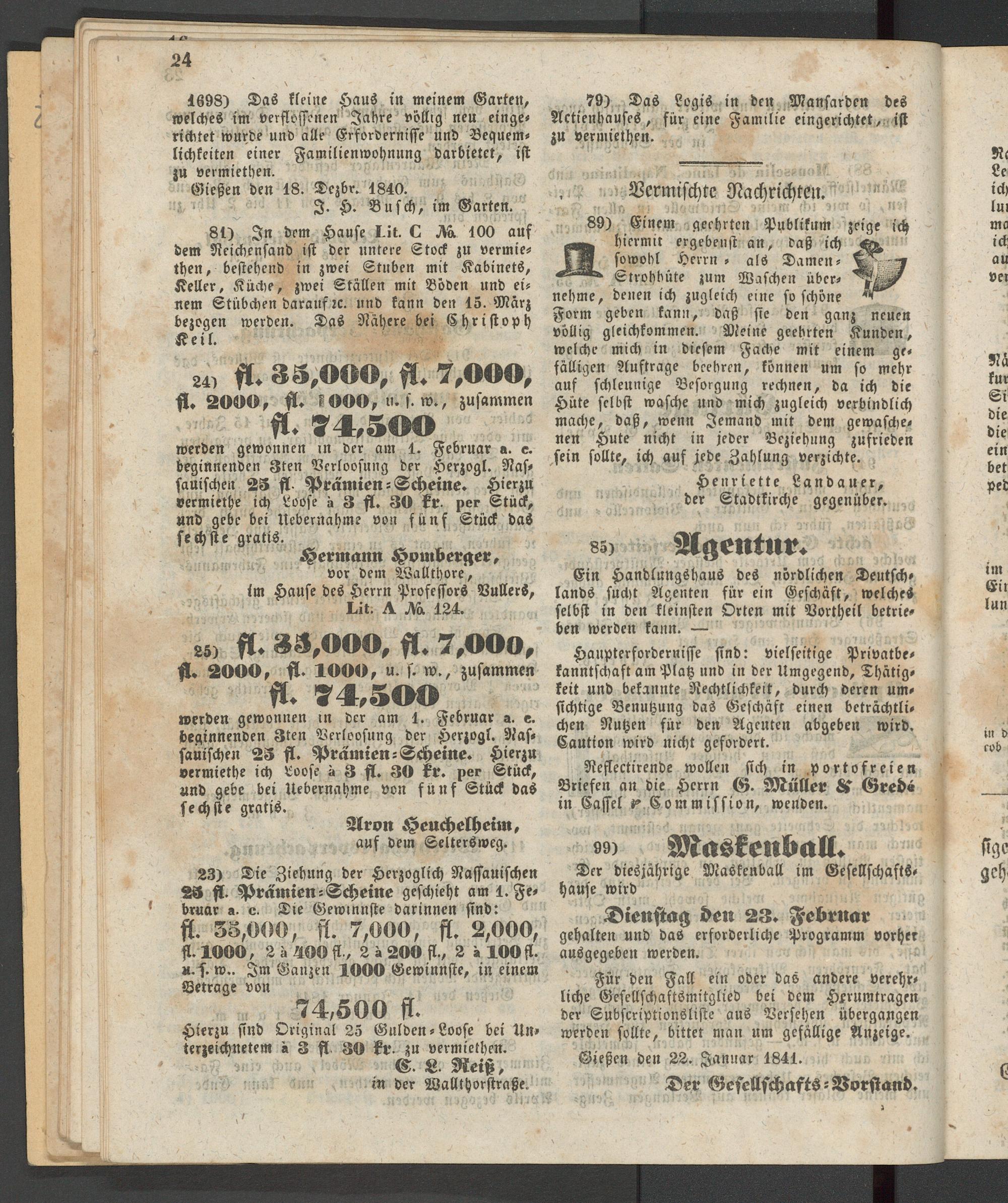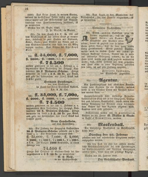Anzeigeblatt für die Provinzialhauptstadt Gießen. 1840-1867