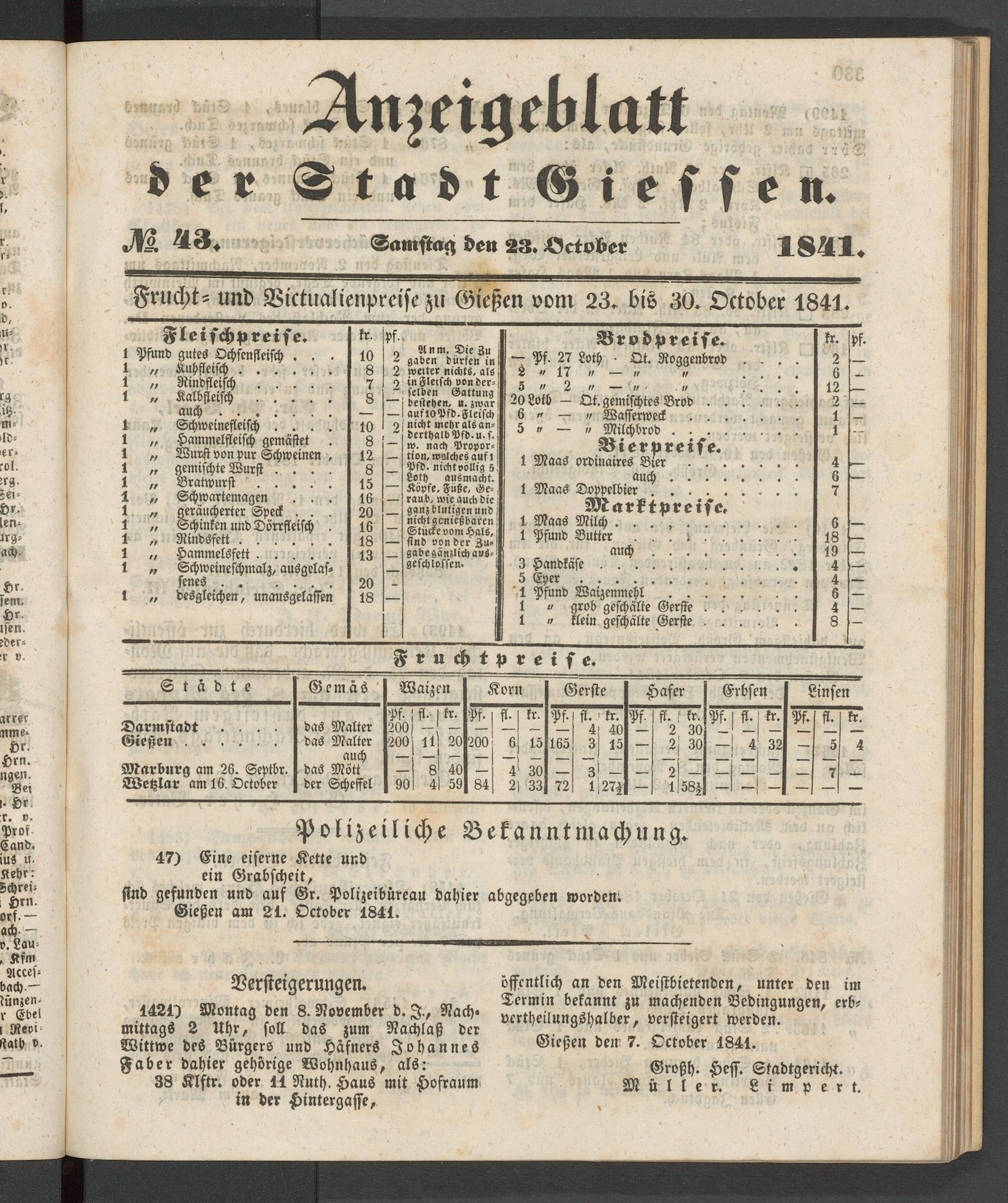 Anzeigeblatt für die Provinzialhauptstadt Gießen. 1840-1867