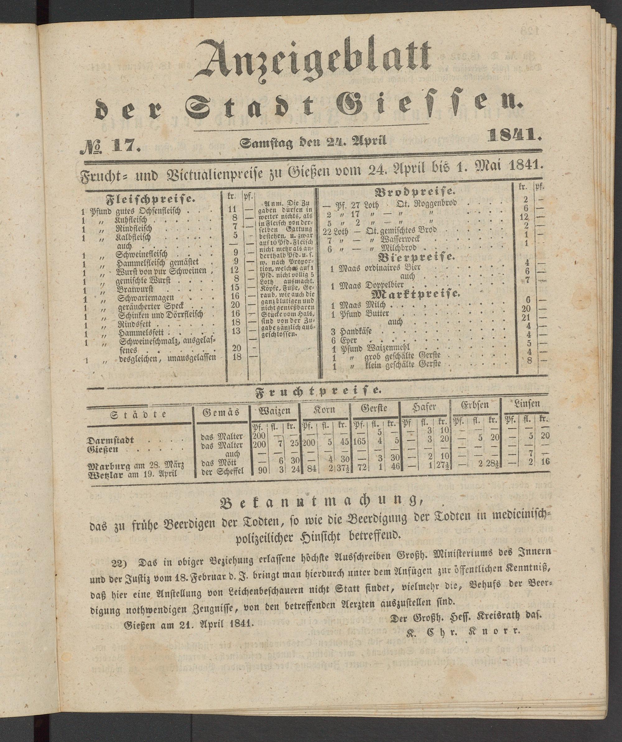 Anzeigeblatt für die Provinzialhauptstadt Gießen. 1840-1867