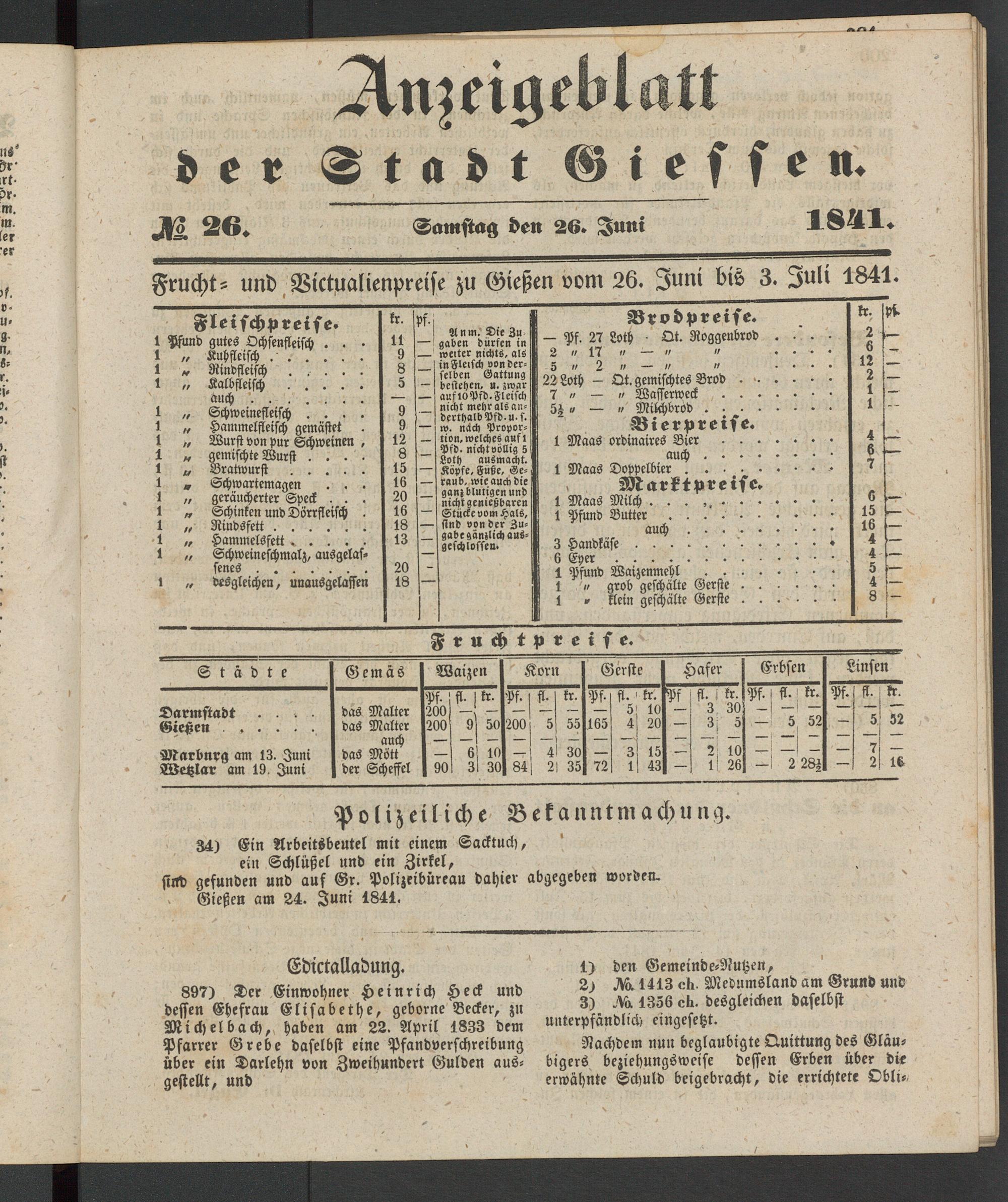 Anzeigeblatt für die Provinzialhauptstadt Gießen. 1840-1867