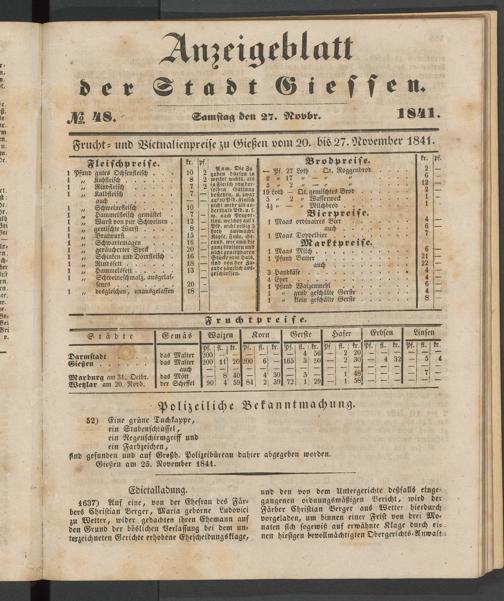 Anzeigeblatt für die Provinzialhauptstadt Gießen. 1840-1867