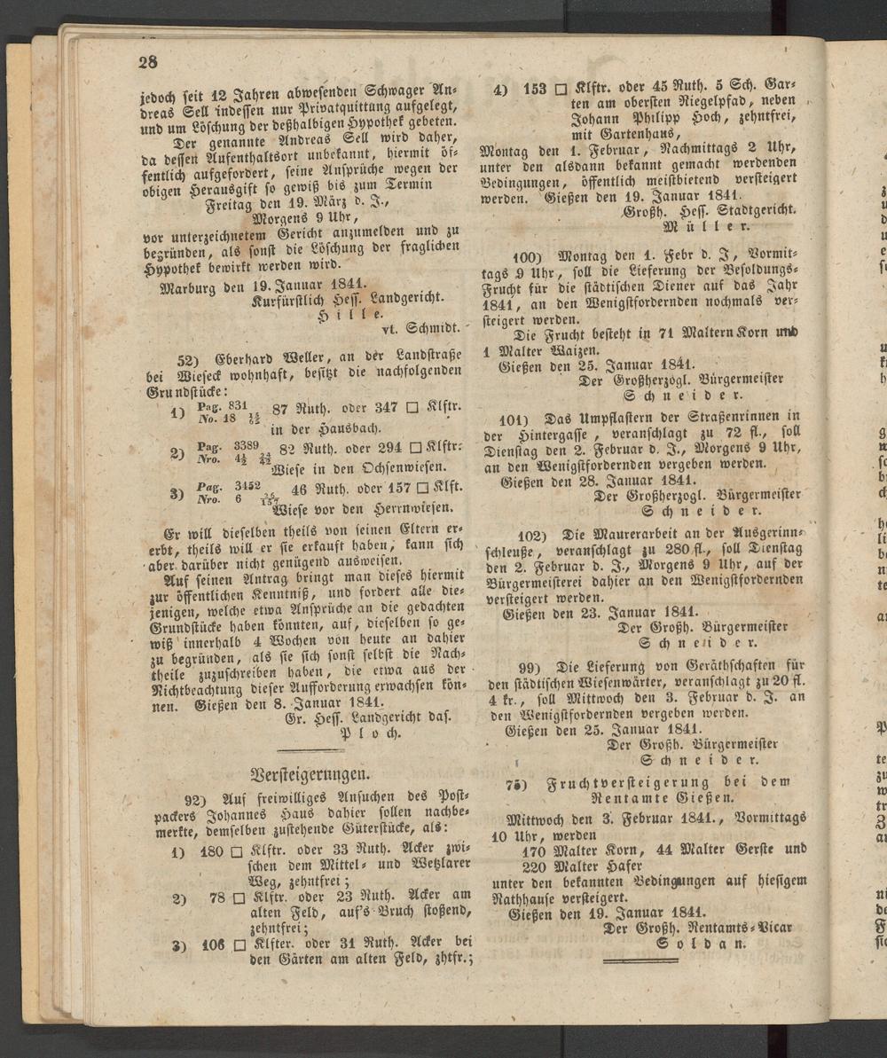 Anzeigeblatt für die Provinzialhauptstadt Gießen. 1840-1867