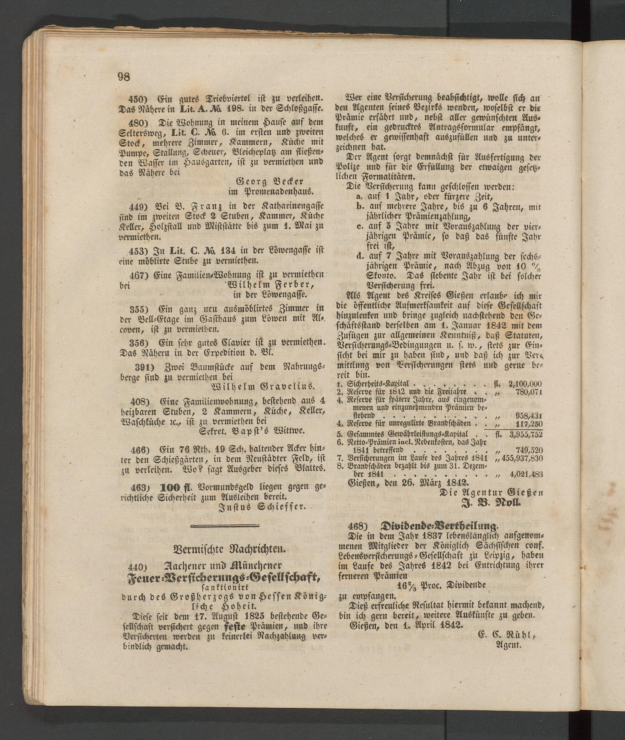 Anzeigeblatt für die Provinzialhauptstadt Gießen. 1840-1867