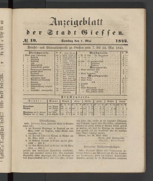 Anzeigeblatt für die Provinzialhauptstadt Gießen. 1840-1867