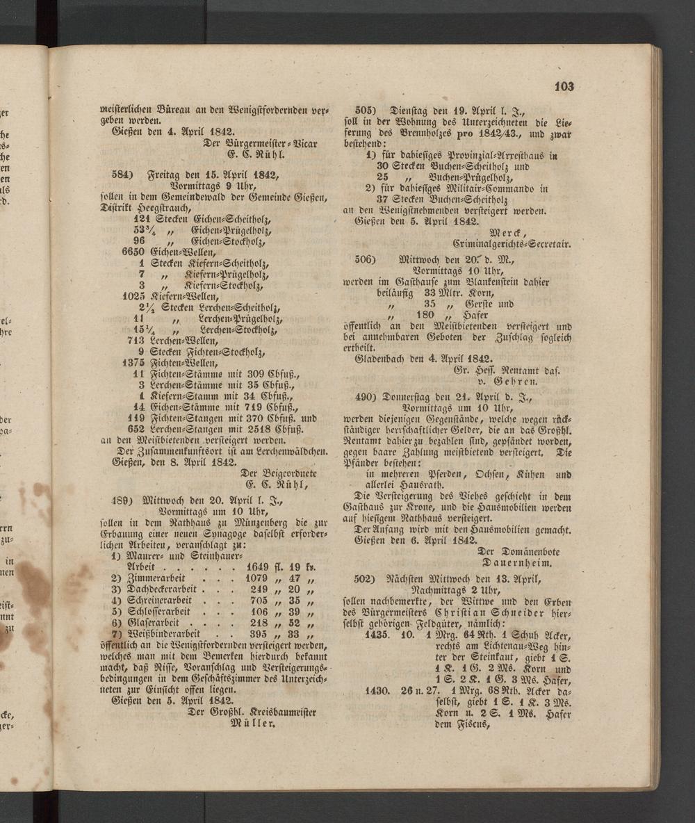 Anzeigeblatt für die Provinzialhauptstadt Gießen. 1840-1867