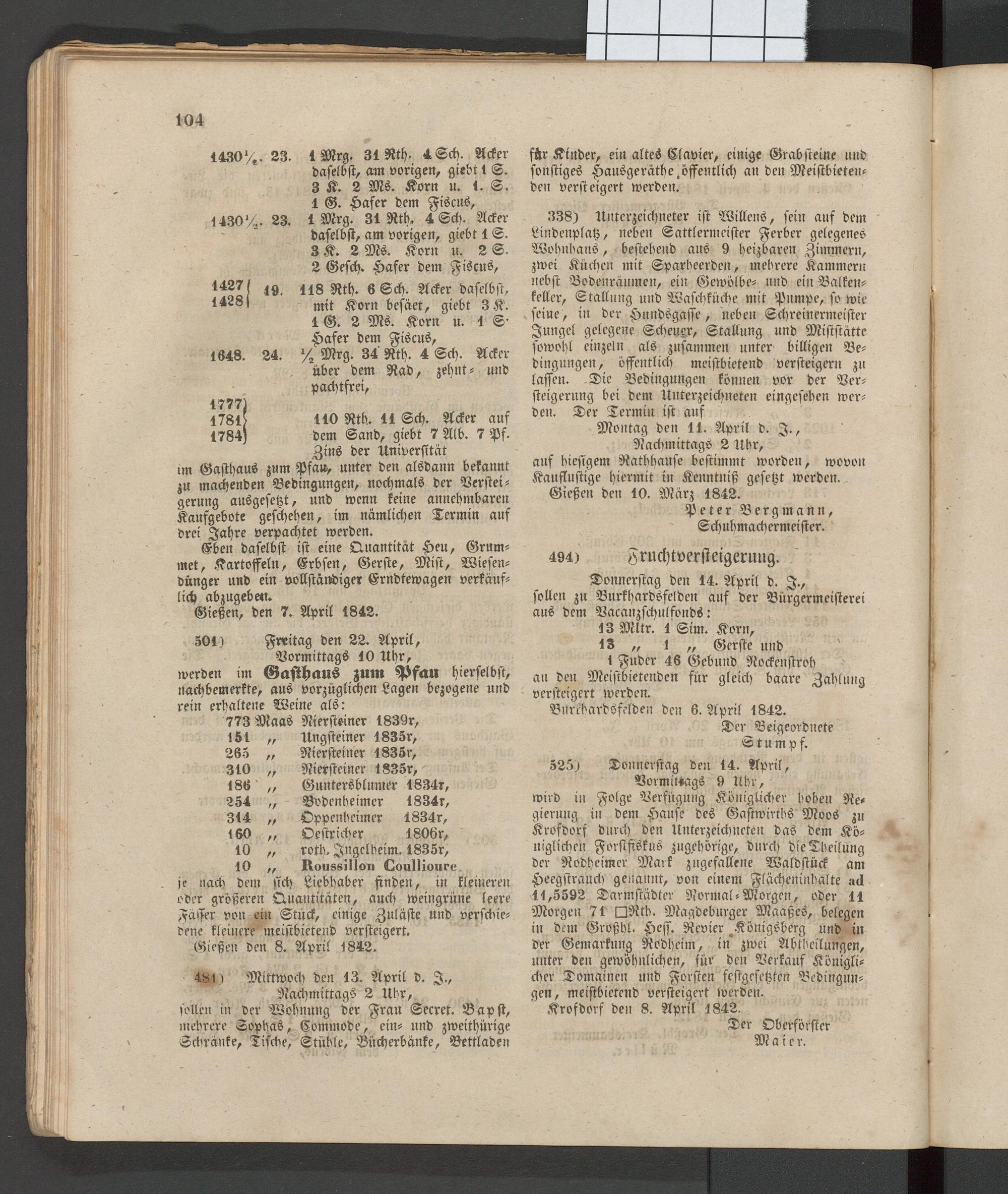 Anzeigeblatt für die Provinzialhauptstadt Gießen. 1840-1867