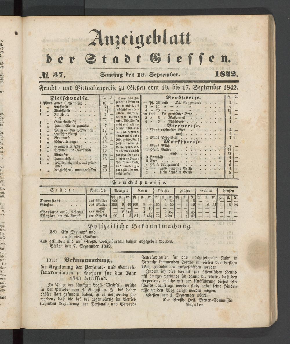 Anzeigeblatt für die Provinzialhauptstadt Gießen. 1840-1867