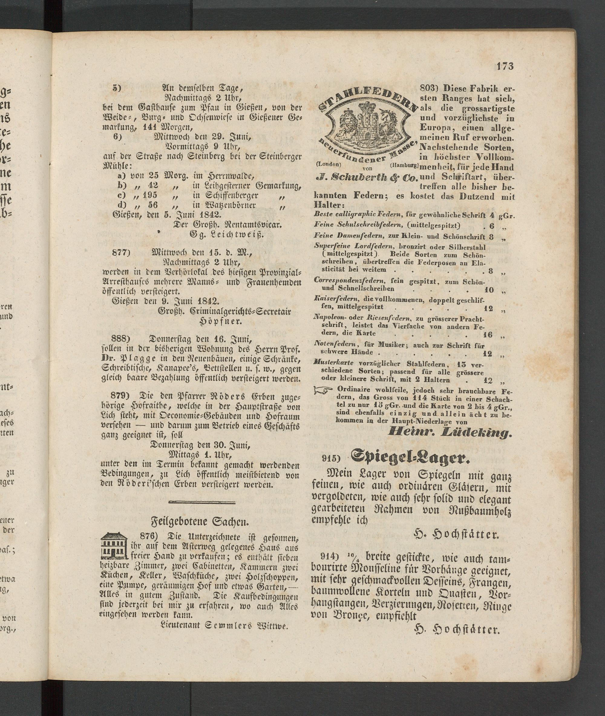 Anzeigeblatt für die Provinzialhauptstadt Gießen. 1840-1867