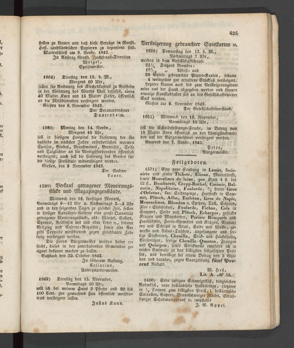 Anzeigeblatt für die Provinzialhauptstadt Gießen. 1840-1867