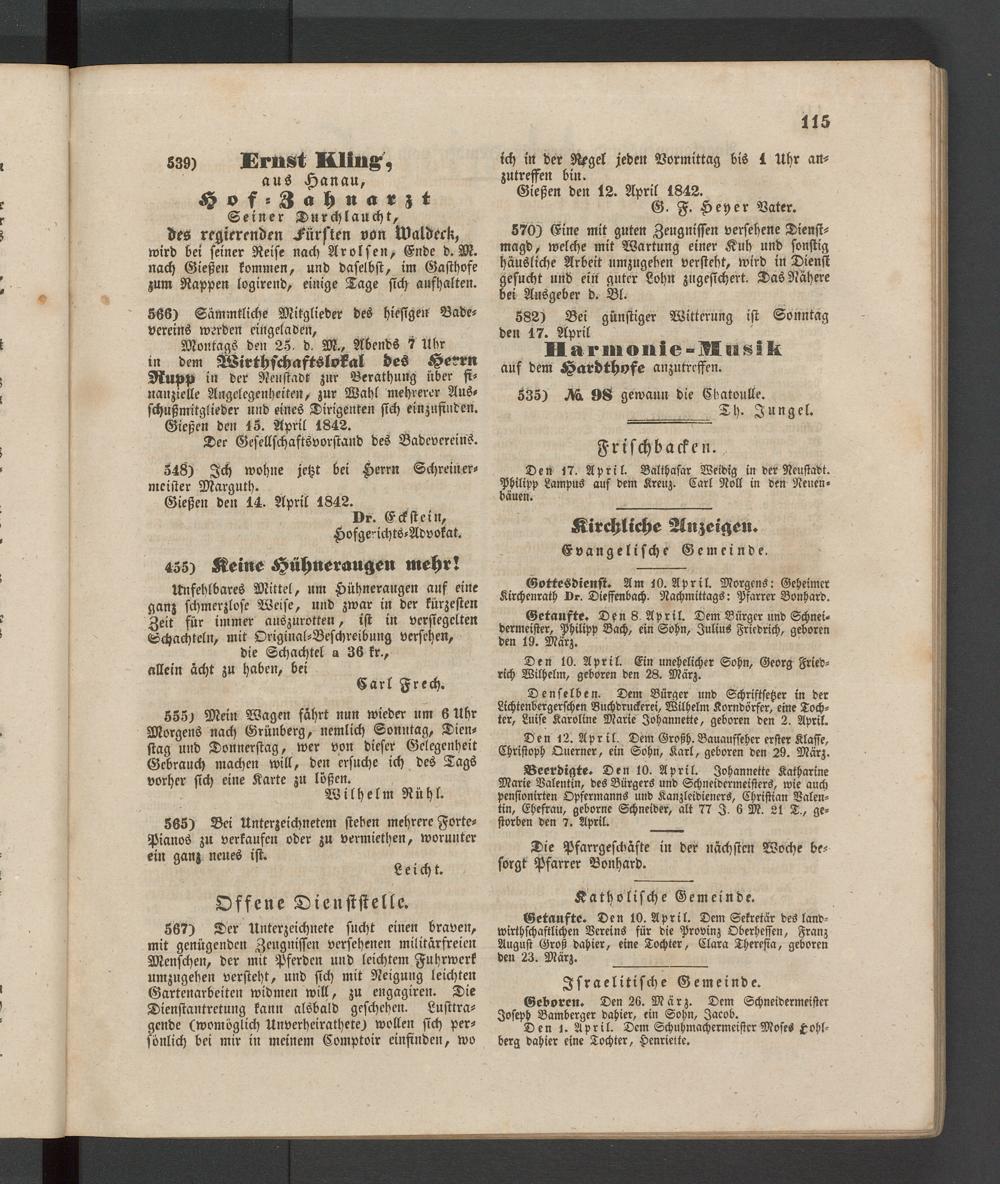 Anzeigeblatt für die Provinzialhauptstadt Gießen. 1840-1867