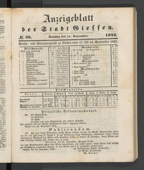 Anzeigeblatt für die Provinzialhauptstadt Gießen. 1840-1867