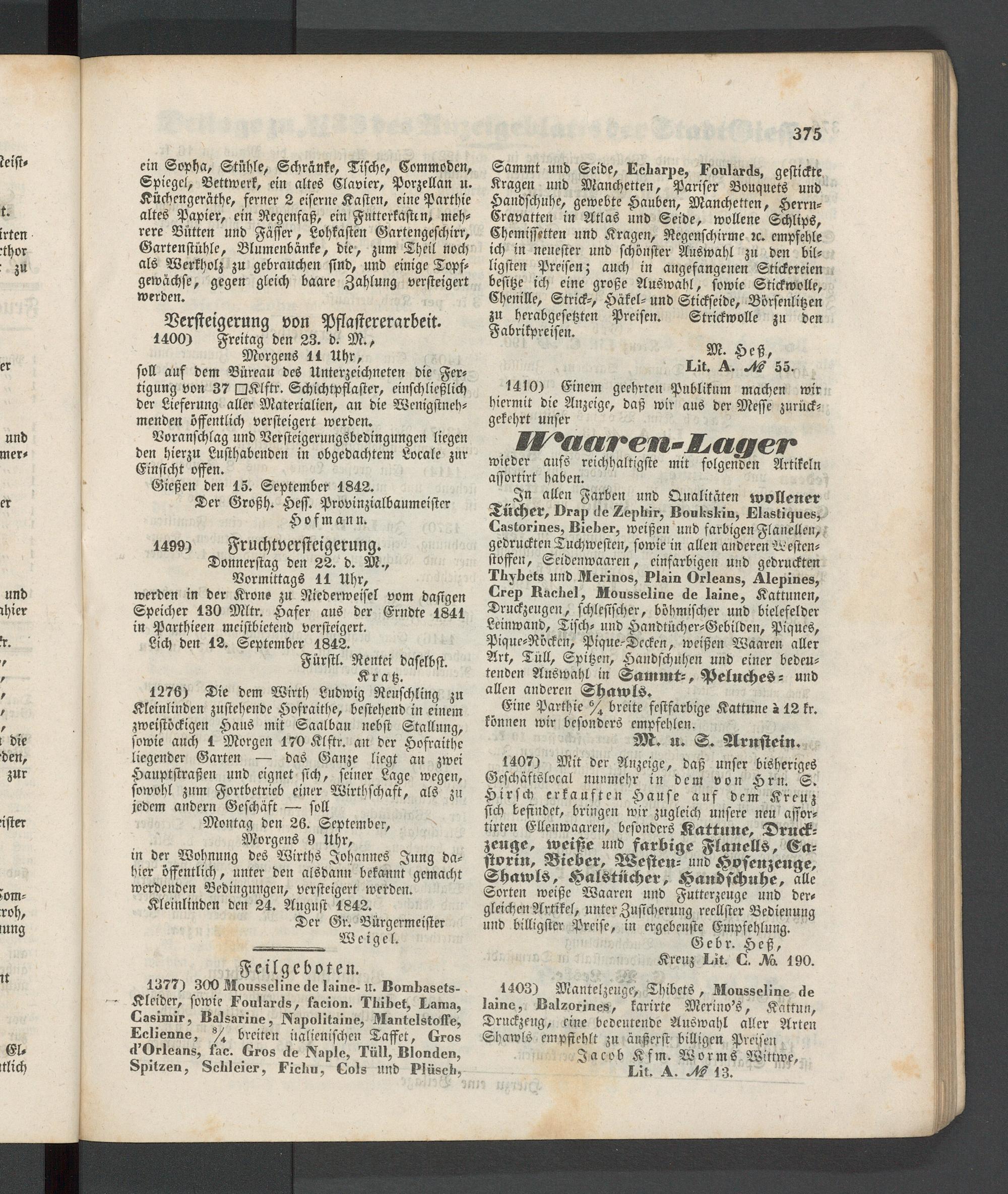 Anzeigeblatt für die Provinzialhauptstadt Gießen. 1840-1867
