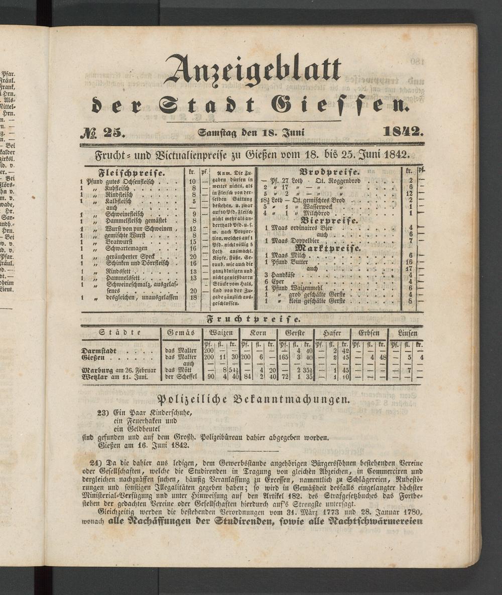 Anzeigeblatt für die Provinzialhauptstadt Gießen. 1840-1867