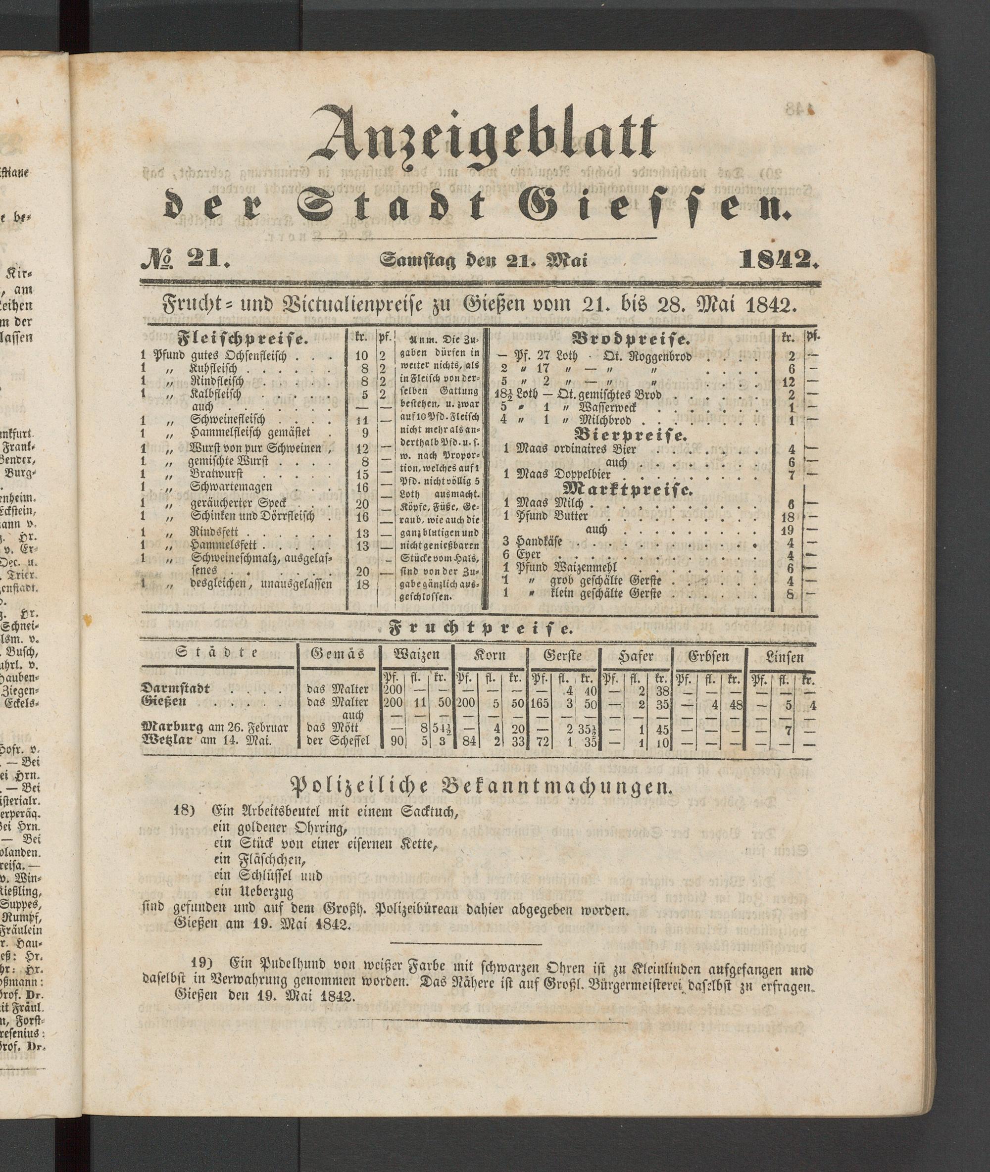 Anzeigeblatt für die Provinzialhauptstadt Gießen. 1840-1867