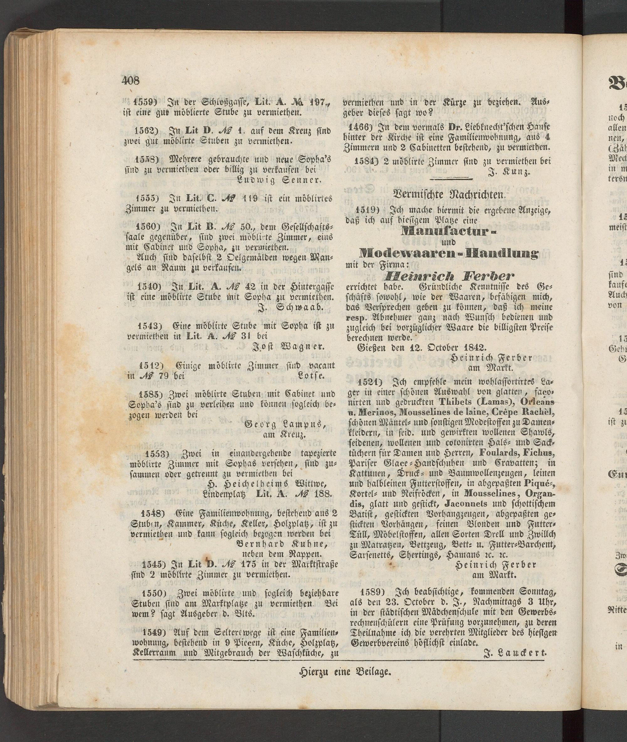 Anzeigeblatt für die Provinzialhauptstadt Gießen. 1840-1867