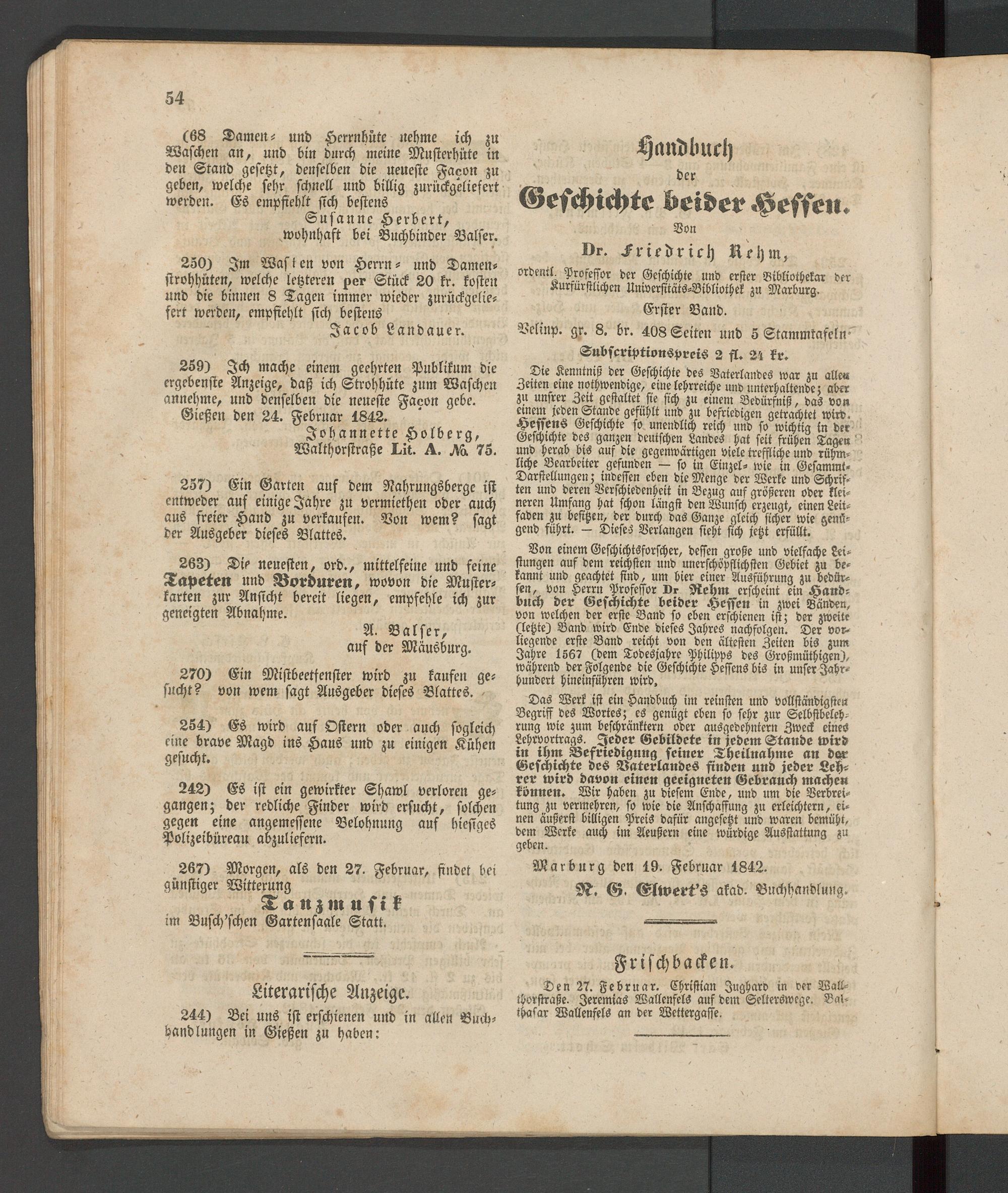 Anzeigeblatt für die Provinzialhauptstadt Gießen. 1840-1867