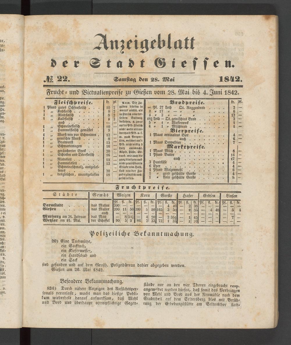 Anzeigeblatt für die Provinzialhauptstadt Gießen. 1840-1867