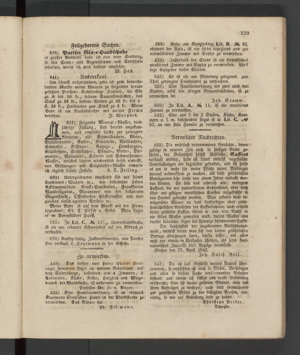 Anzeigeblatt für die Provinzialhauptstadt Gießen. 1840-1867