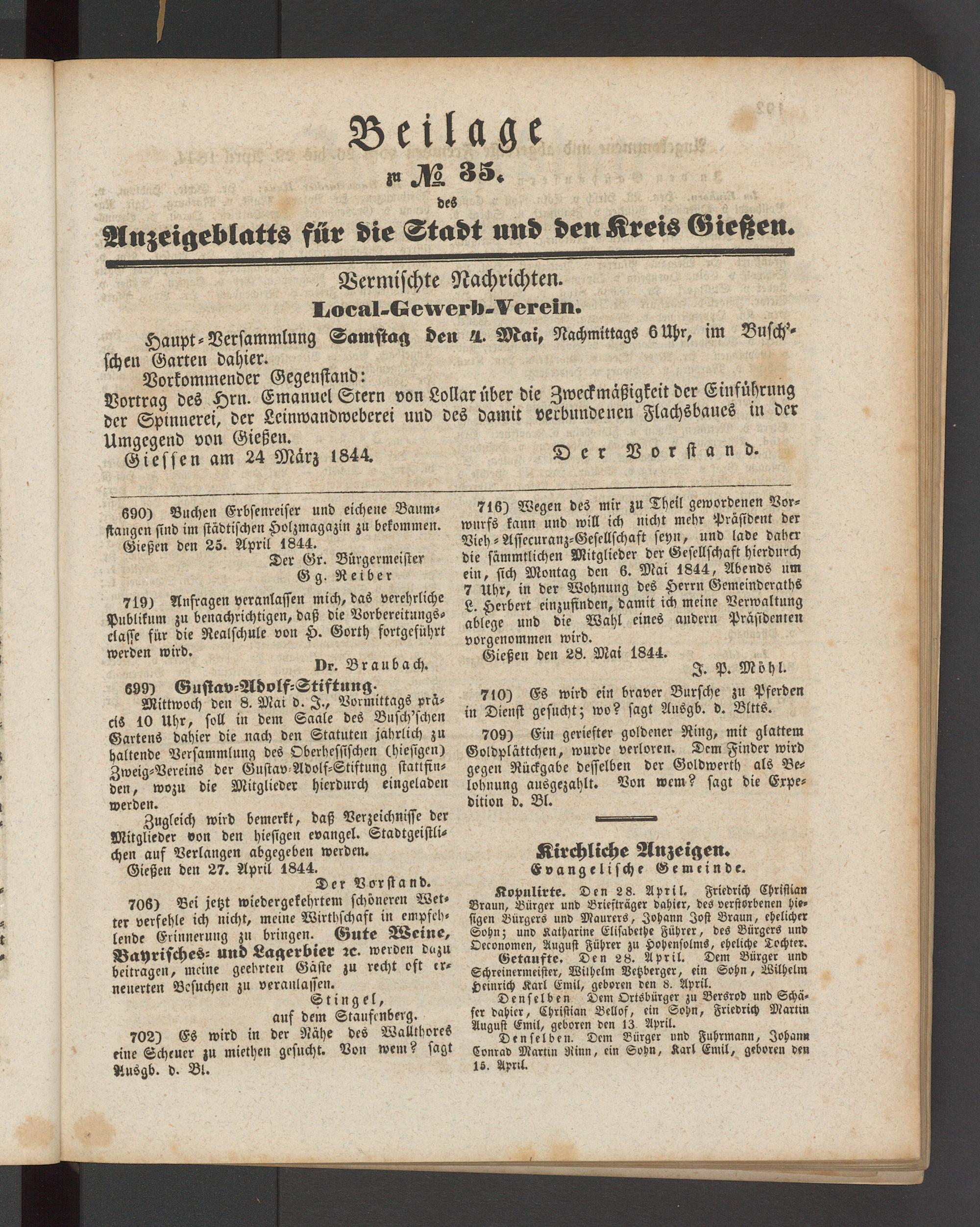 Anzeigeblatt für die Provinzialhauptstadt Gießen. 1840-1867