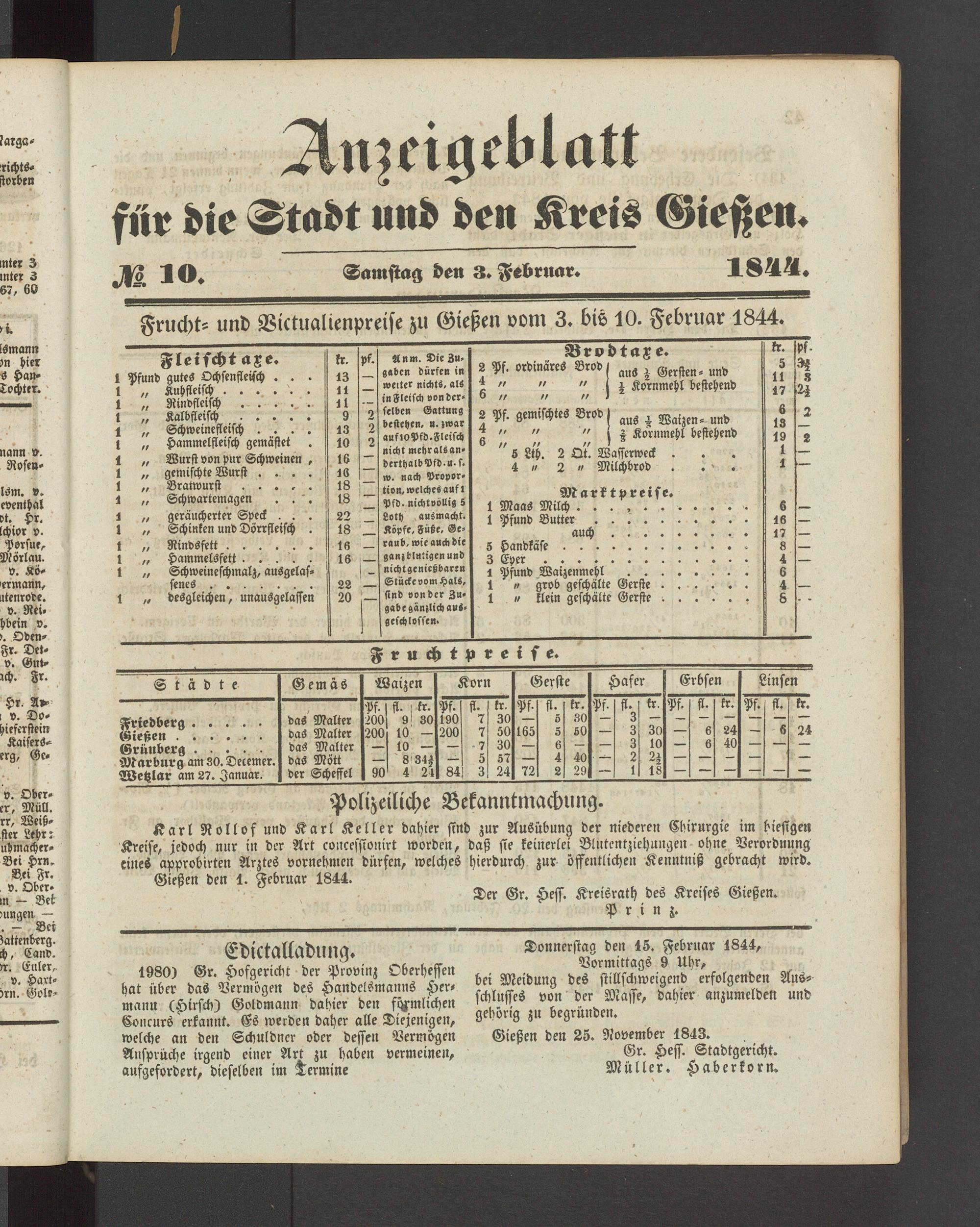 Anzeigeblatt für die Provinzialhauptstadt Gießen. 1840-1867